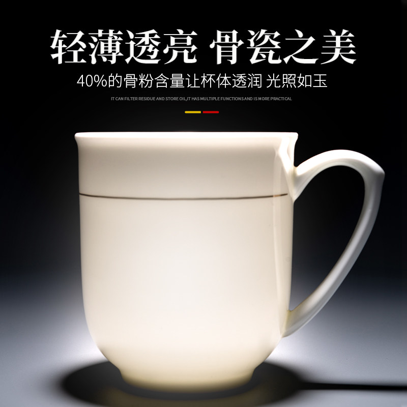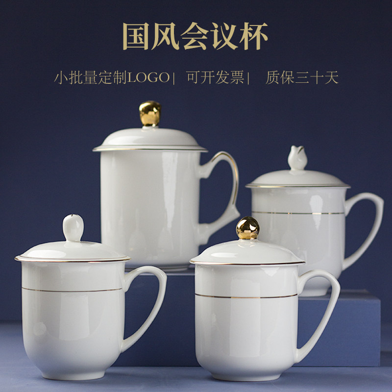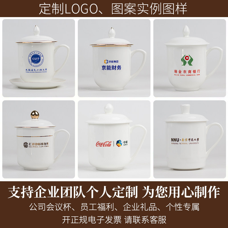 📚 定制会议杯茶杯陶瓷水杯带盖办公室骨质瓷杯酒店宾馆公司LOGO印字