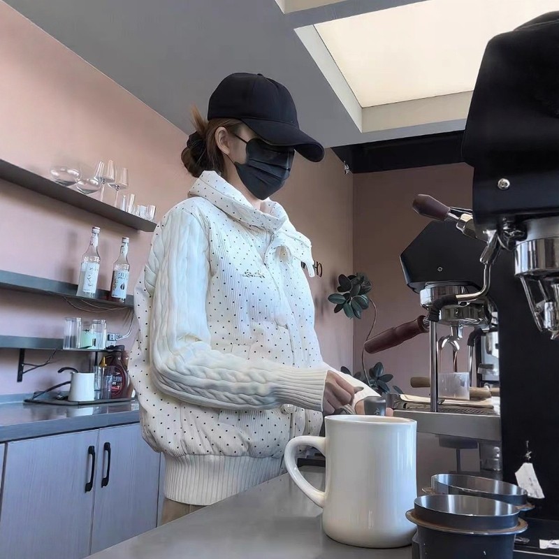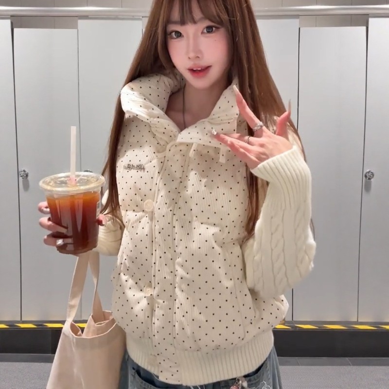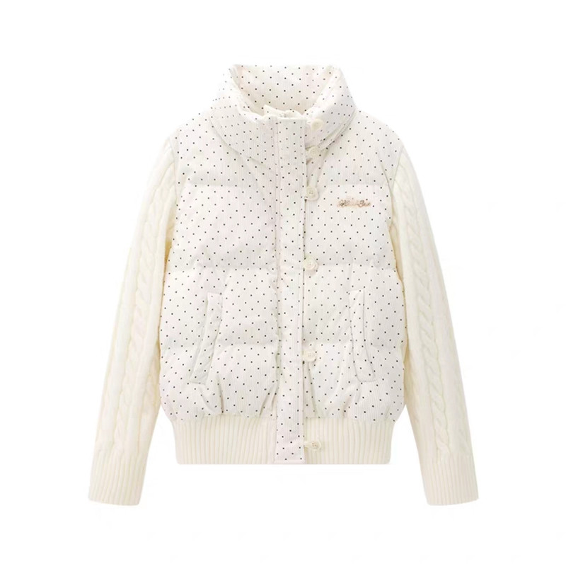 📚 韩系甜美波点针织拼接长袖冬季棉服女宽松短款保暖加厚面包服外套