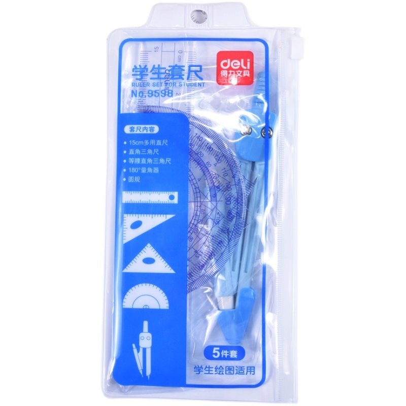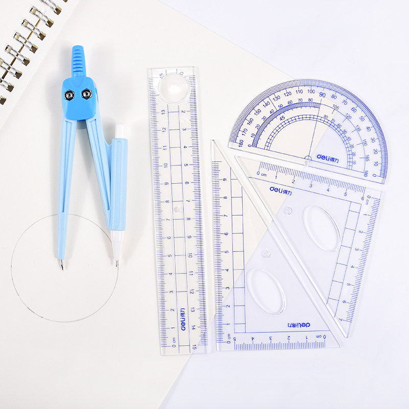 📚 得力金属亚克力套尺中小学生绘图考试仪尺带波浪线直尺画线工程设计套装三角板量角器制图多功能绘画圆规套装
