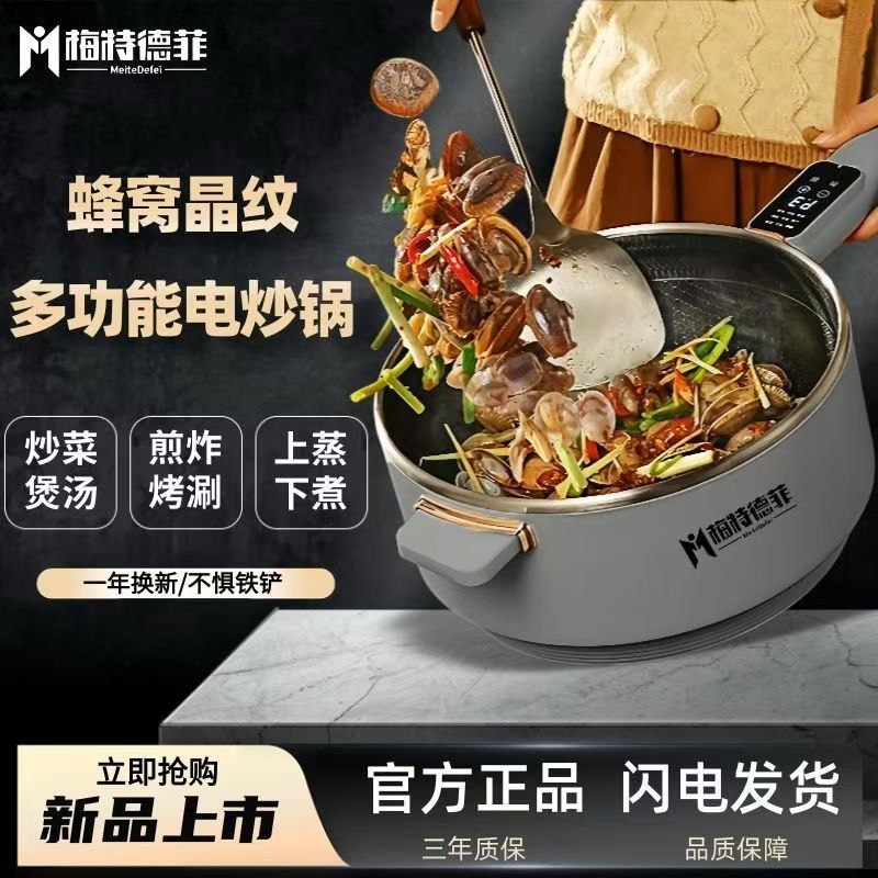 📚 德国梅特德菲电炒锅多功能家用不粘锅一体式电炒菜锅蒸煮锅电热锅