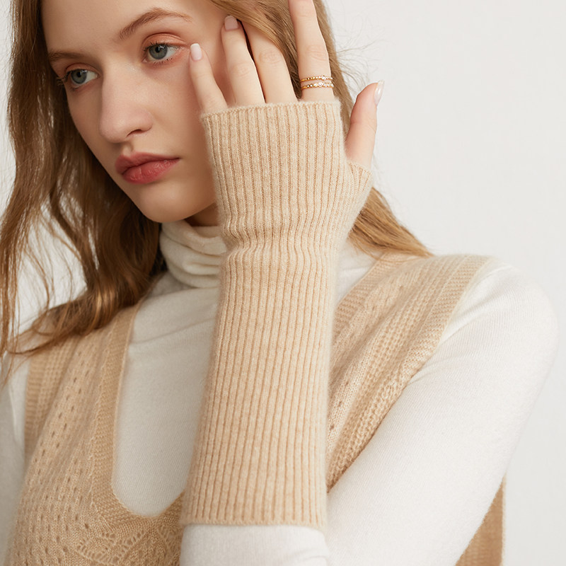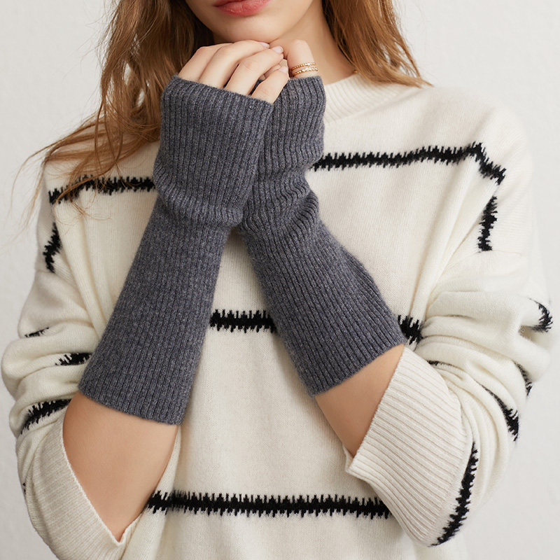 📚 加厚保暖100%纯山羊绒半指手套男女秋冬触屏半截漏指护手腕长手套