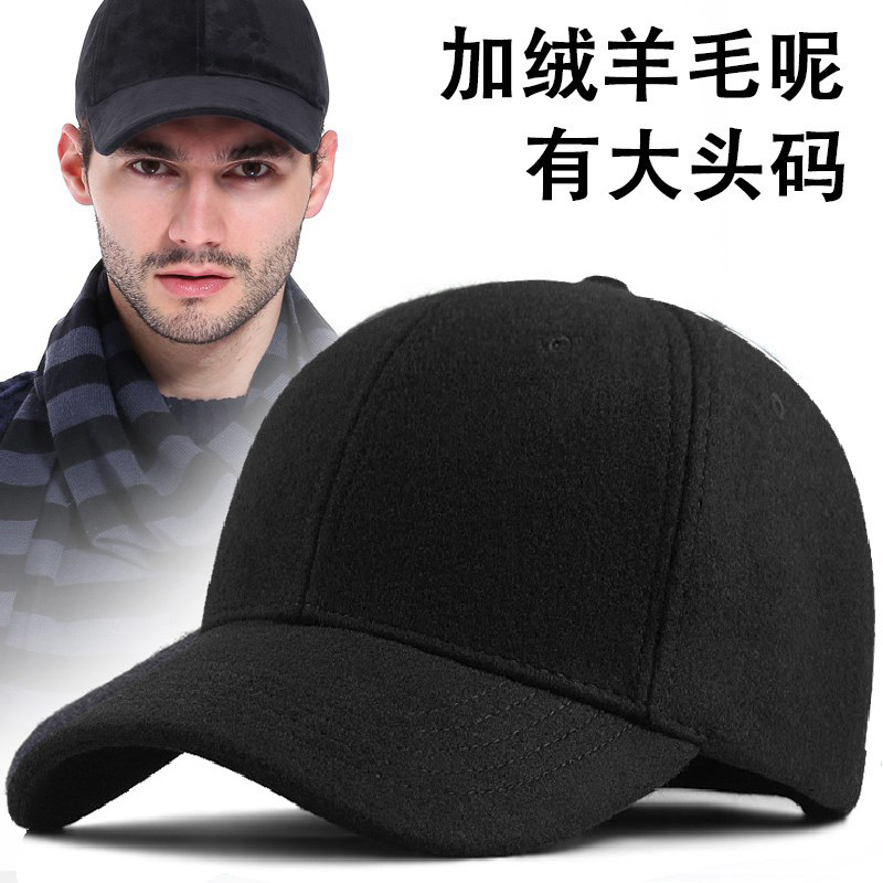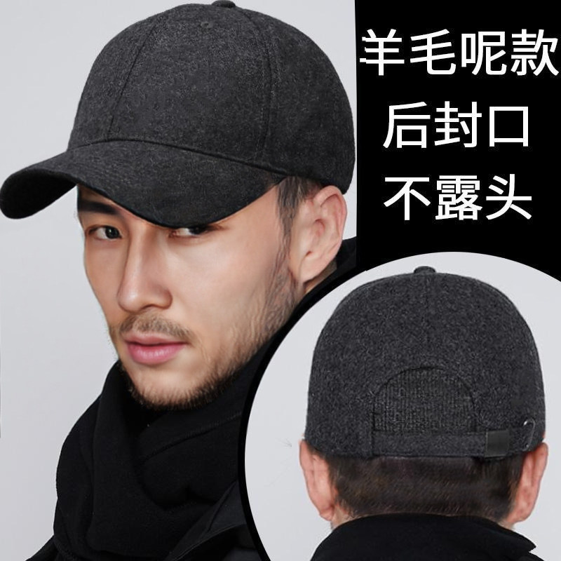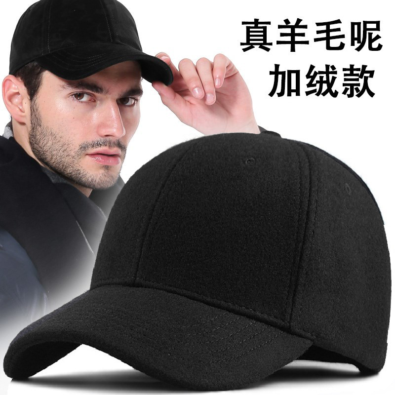 📚 真羊毛呢冬季帽子男2025新款加绒保暖棒球帽大头后闭口光头鸭舌帽