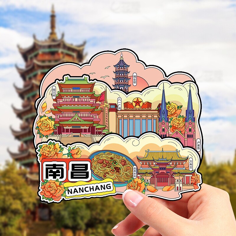📚 南昌文创冰箱贴2026新款个性创意江西国潮滕王阁木质磁吸性纪念品