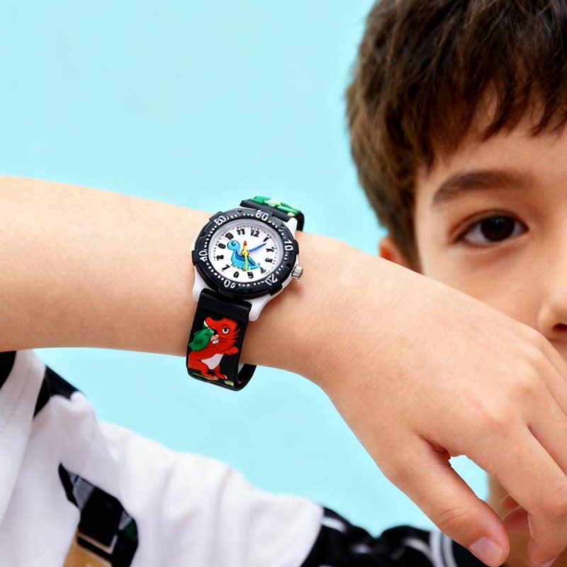 📚 可爱卡通小男孩恐龙手表学生儿童石英防水电子一年级3-8岁潮腕表