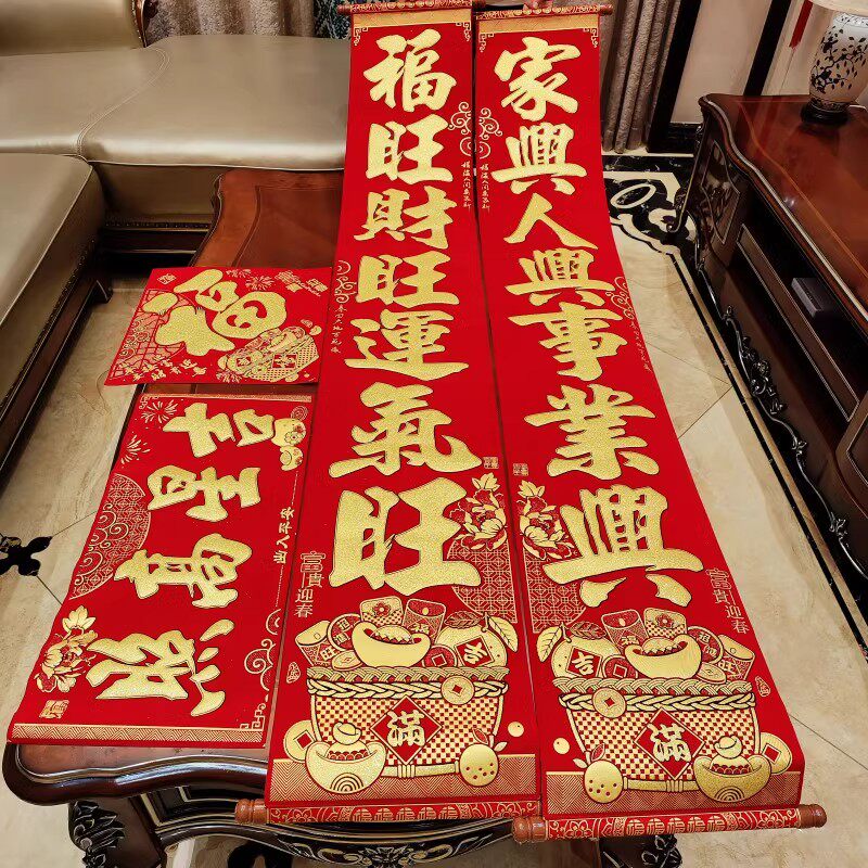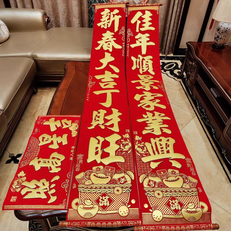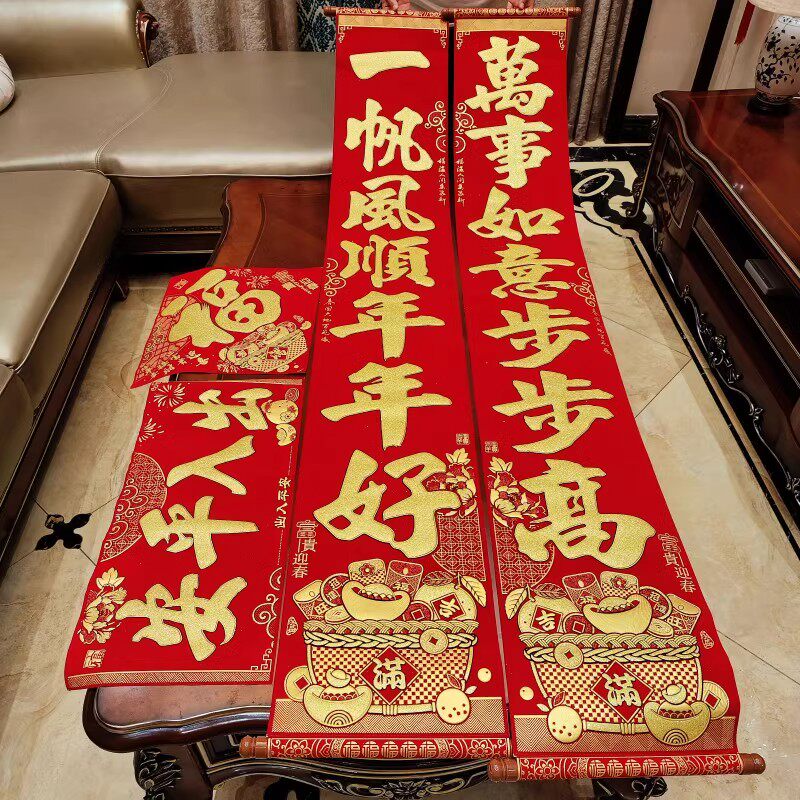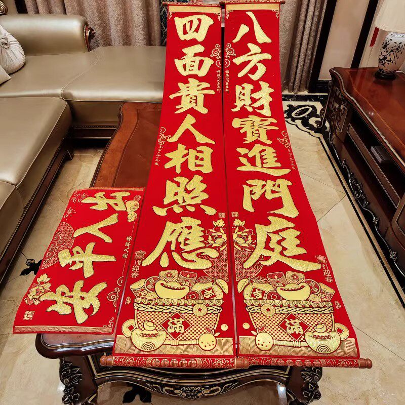 📚 春节挂式对联2026马年新款家用绒布高档挂联新年大门装饰过年春联