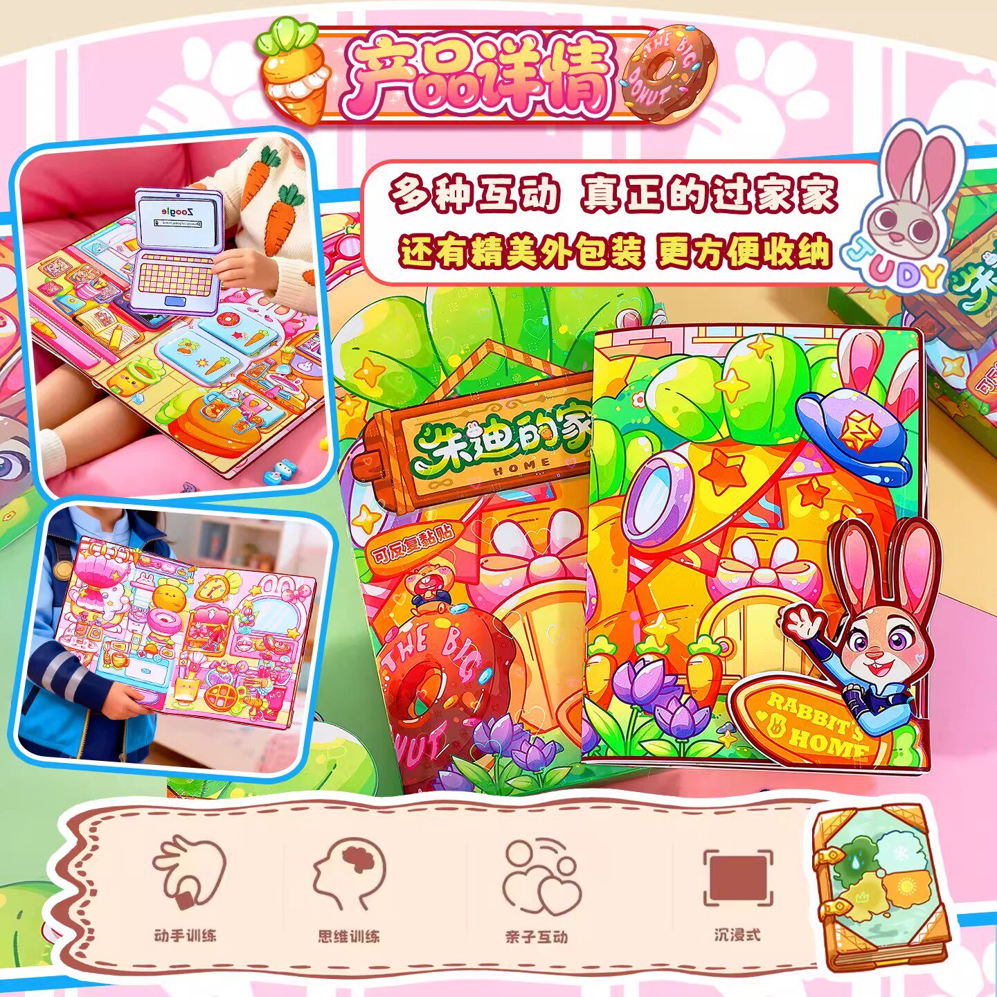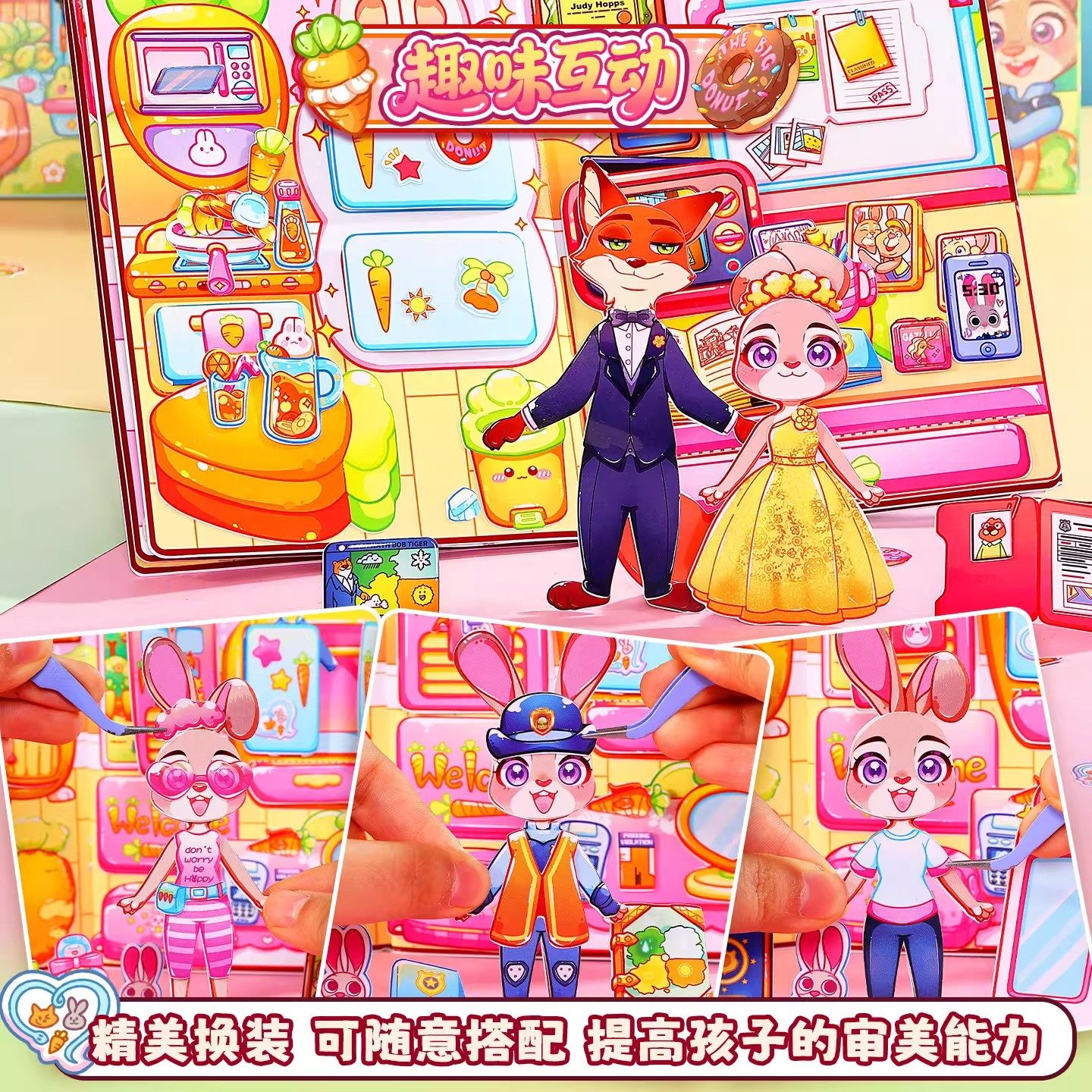 📚 2026新款疯狂动物城安静书免裁剪粘贴画大场景贴纸本儿童女孩玩具