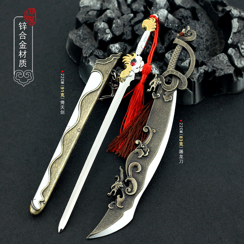 📚 倚天屠龙刀玄重尺绝世好剑血饮狂刀青剑越王勾践武器模型钥匙扣