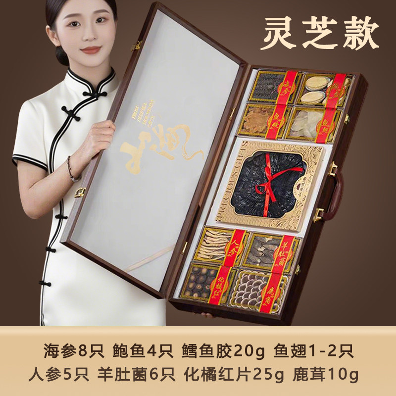 📚 海参鲍鱼九拼礼盒大连海鲜干货高档木盒过年过节营养滋补品送长辈