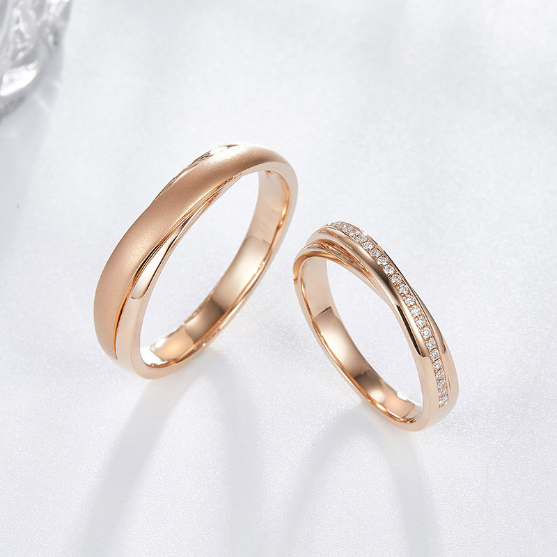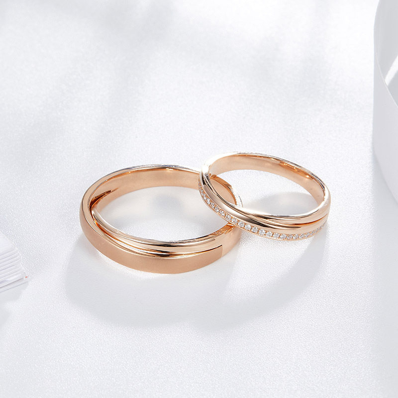 📚 结婚对戒婚戒男女一对金色玫瑰金钻石戒指天作之合小众情侣对戒