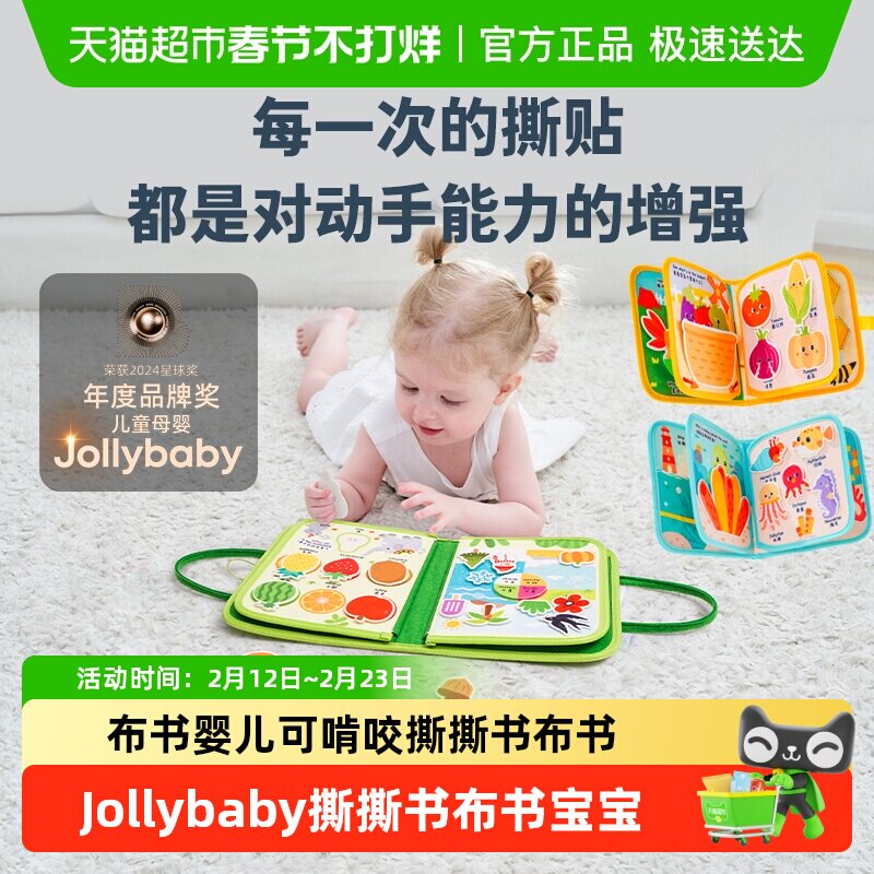 📚 jollybaby布书婴儿玩具撕撕书可啃咬益智早教安静书忙碌书手撕书