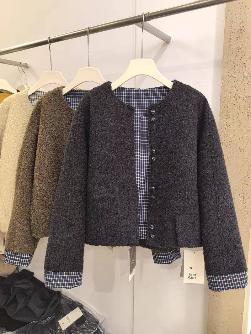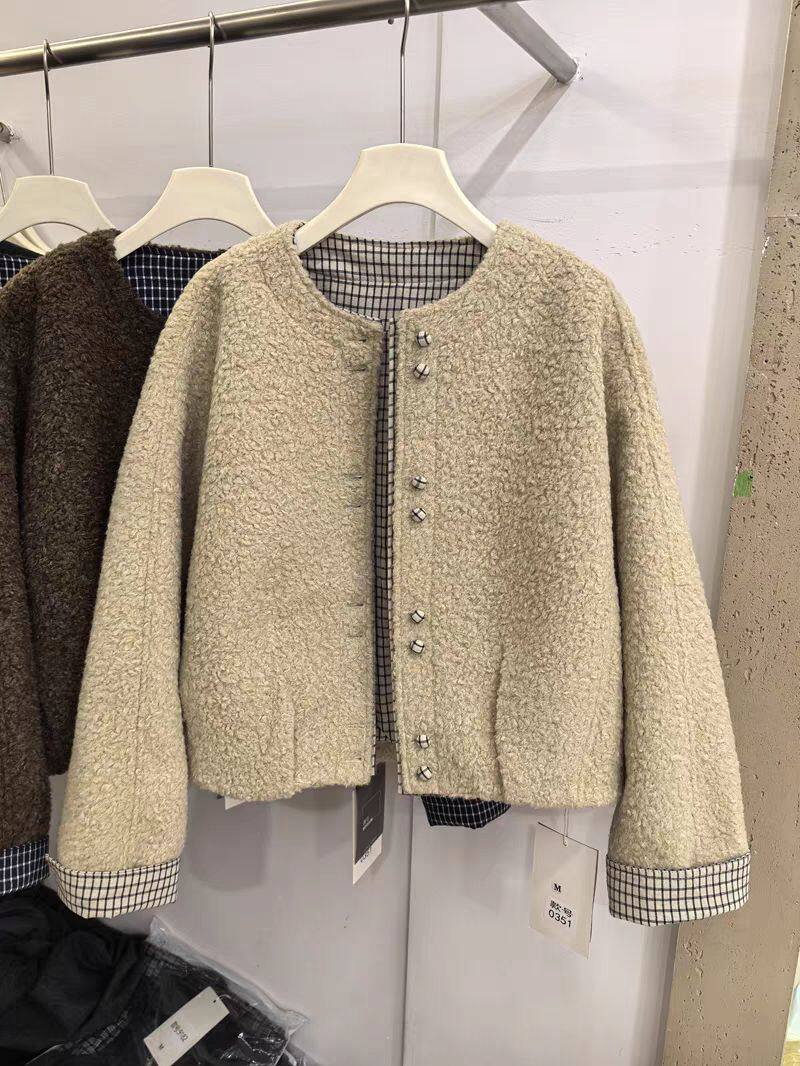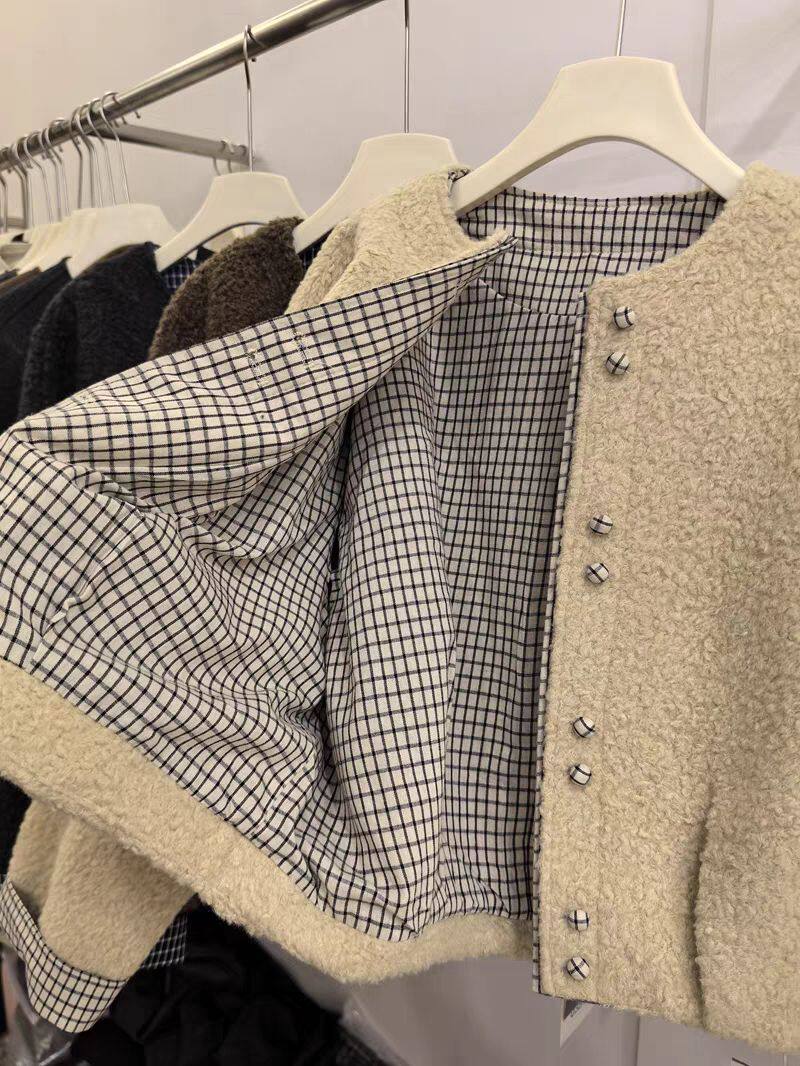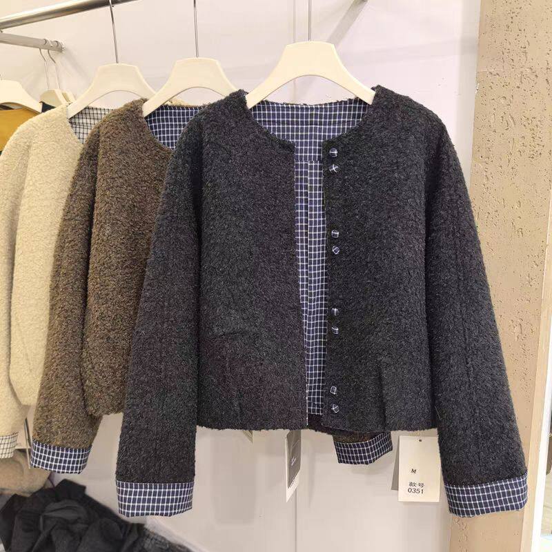 📚 2026春季新款韩版宽松显瘦百搭圆领单排扣羊羔毛圈圈毛外套女上衣