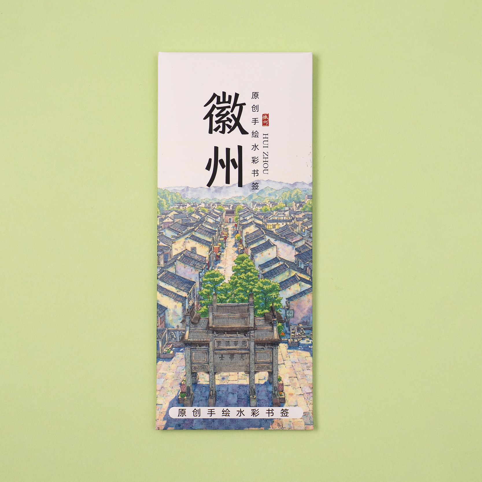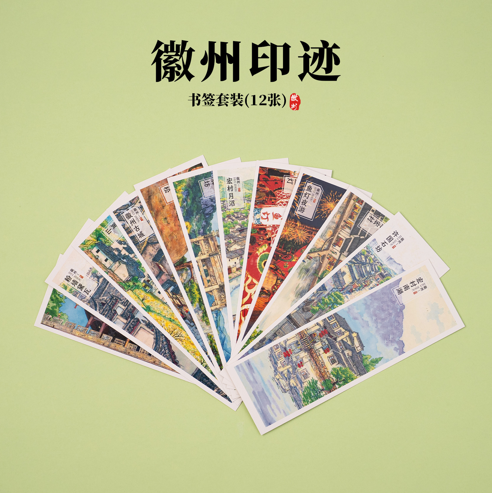 📚 徽州书签许国石坊非遗鱼灯黄山宏村月沼文创手绘水彩创意贺卡套装