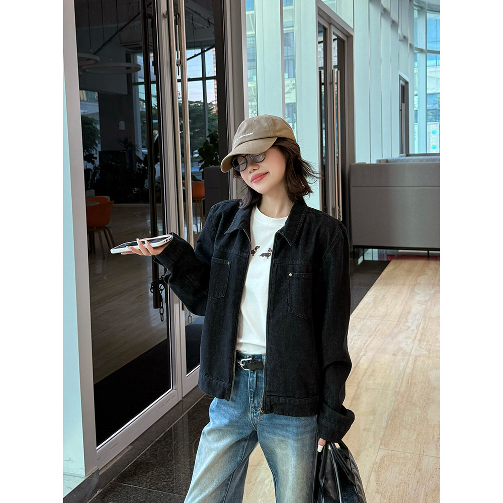 📚 王家有鱼2025秋季新款宽松百搭牛仔上衣女长袖酷帅时尚牛仔外套W