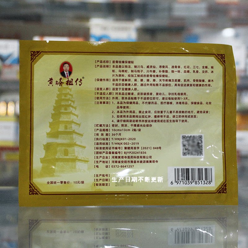 📚 药房直发滑县黄塔寺膏药贴黄塔祖传筋骨络保健贴2贴袋熬制黑膏药