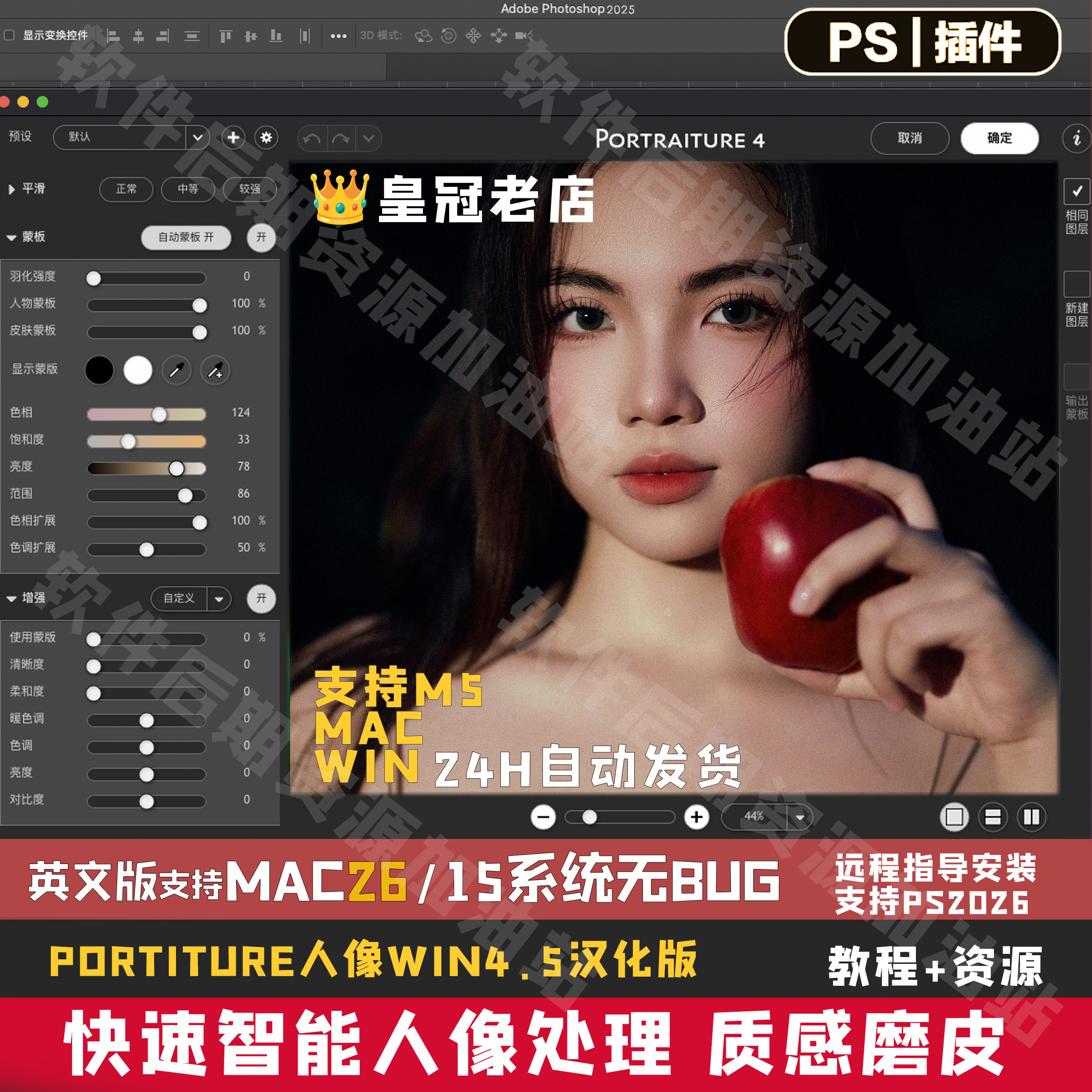🎉 爆款来袭!PS2026人像一键磨皮插件——Portraiture4.5,你的美妆神器!💃