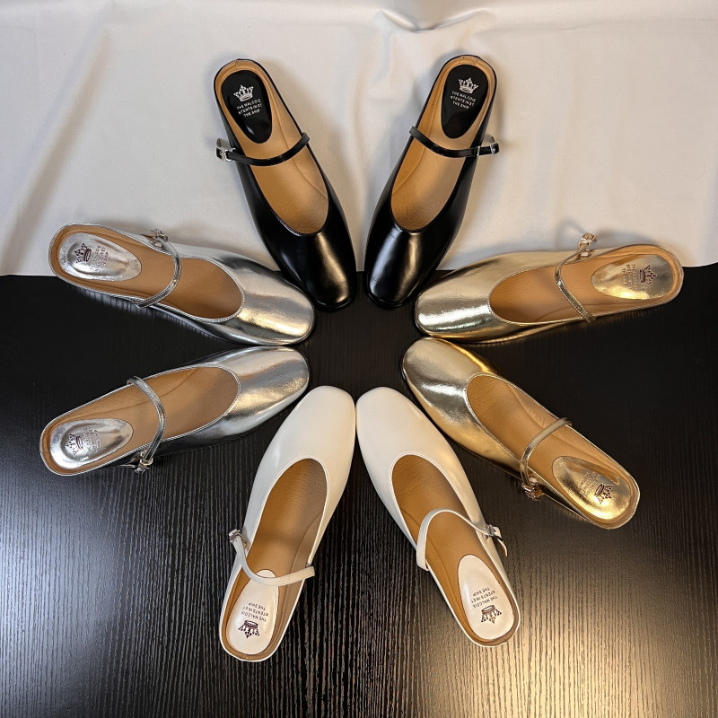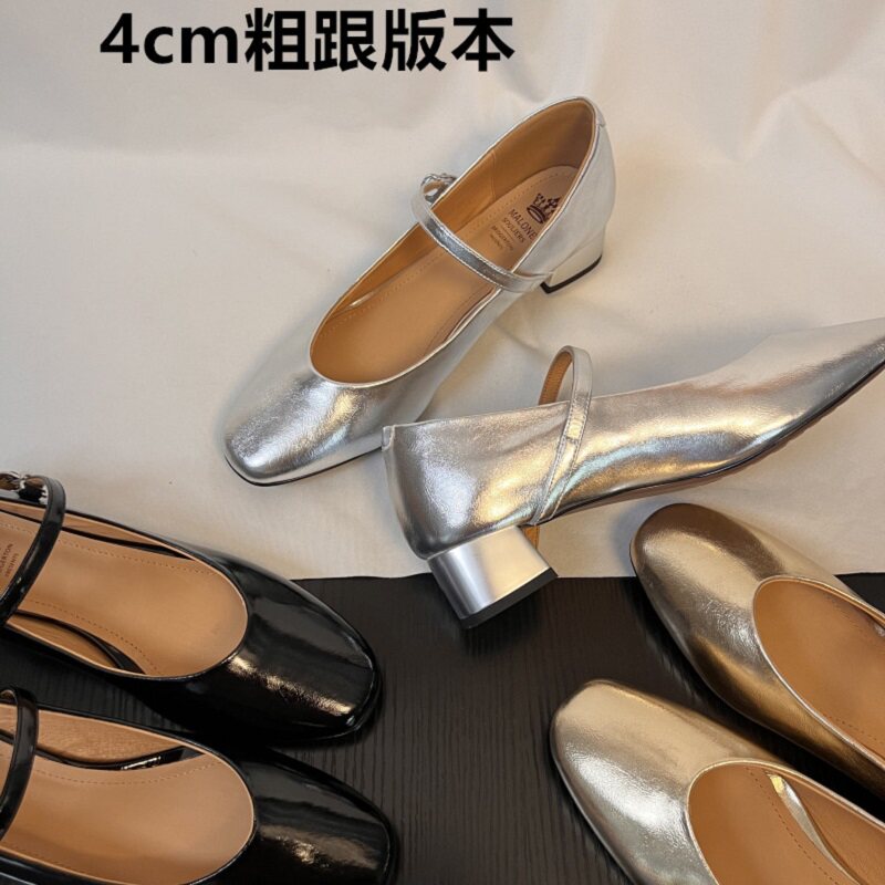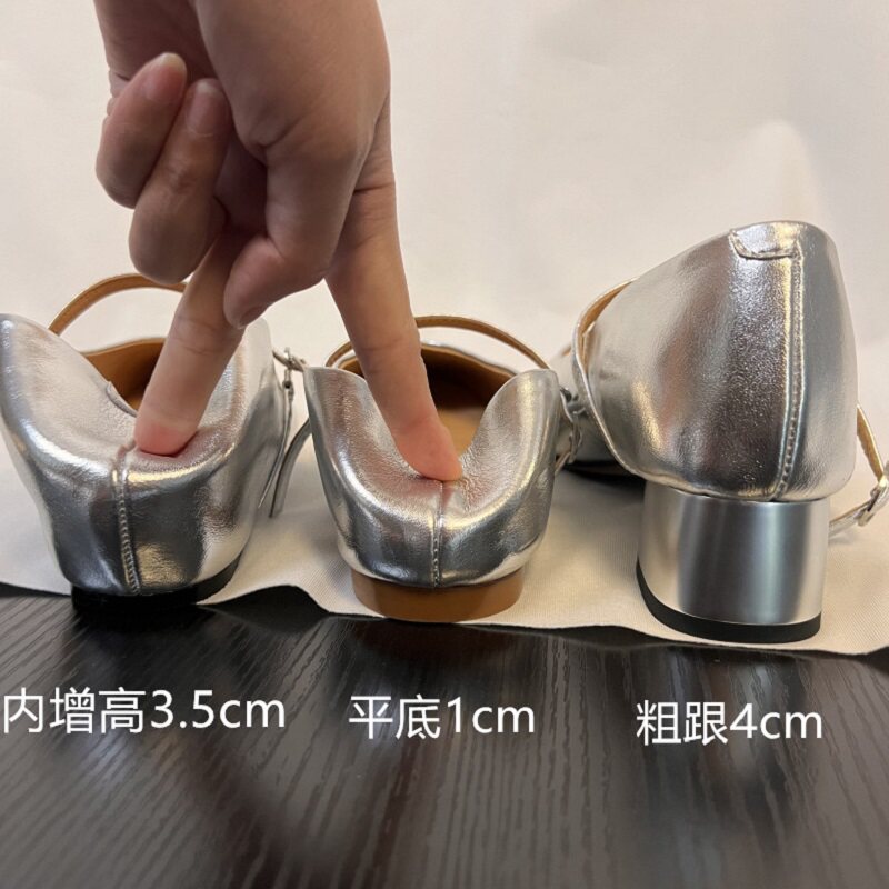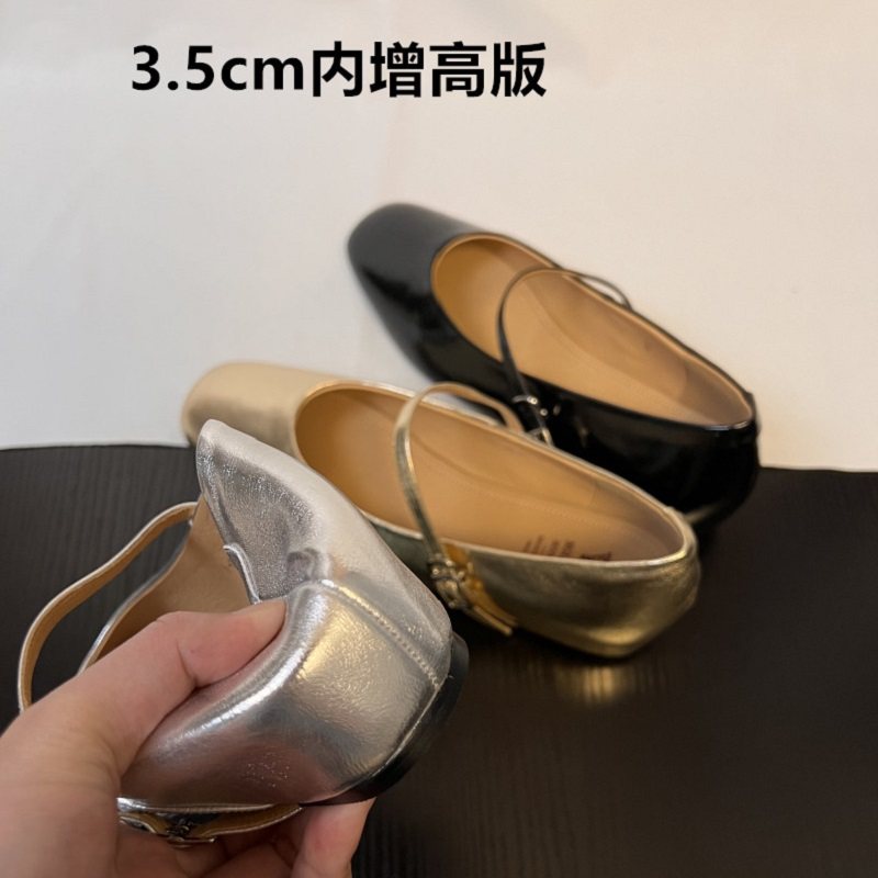 📚 34-43大码【三种跟高】全真皮浅口平底单鞋女粗跟玛丽珍鞋内增高