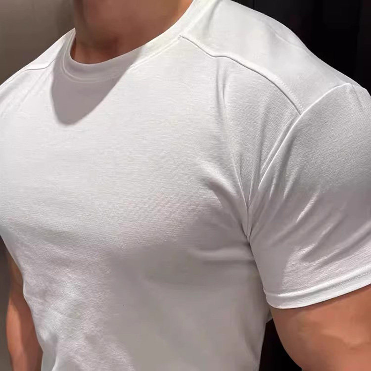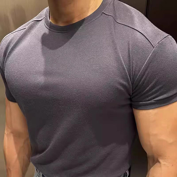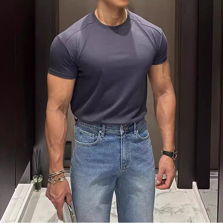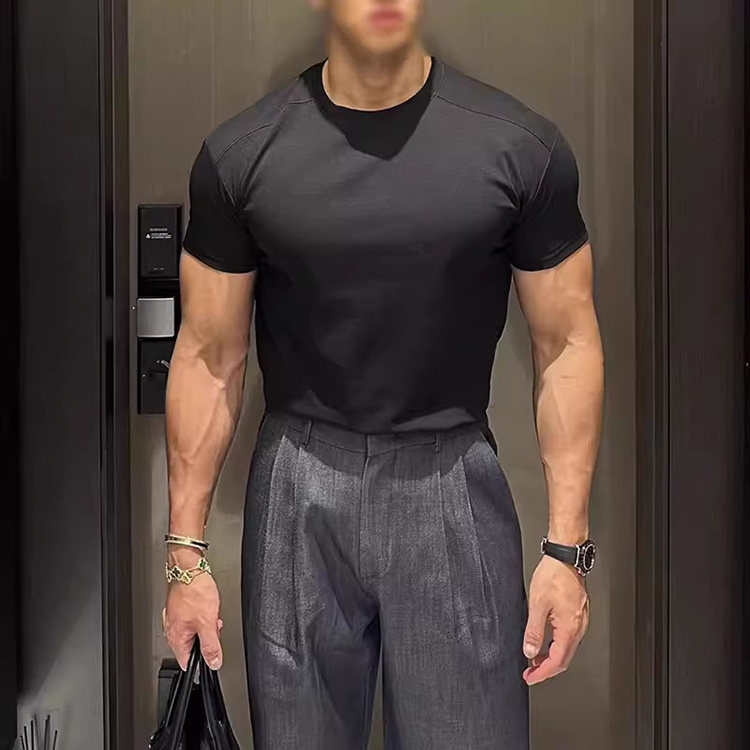 📚 韩国东大门代购MILLER夏季高档拼接弹力修身纯色打底短袖T恤衫男