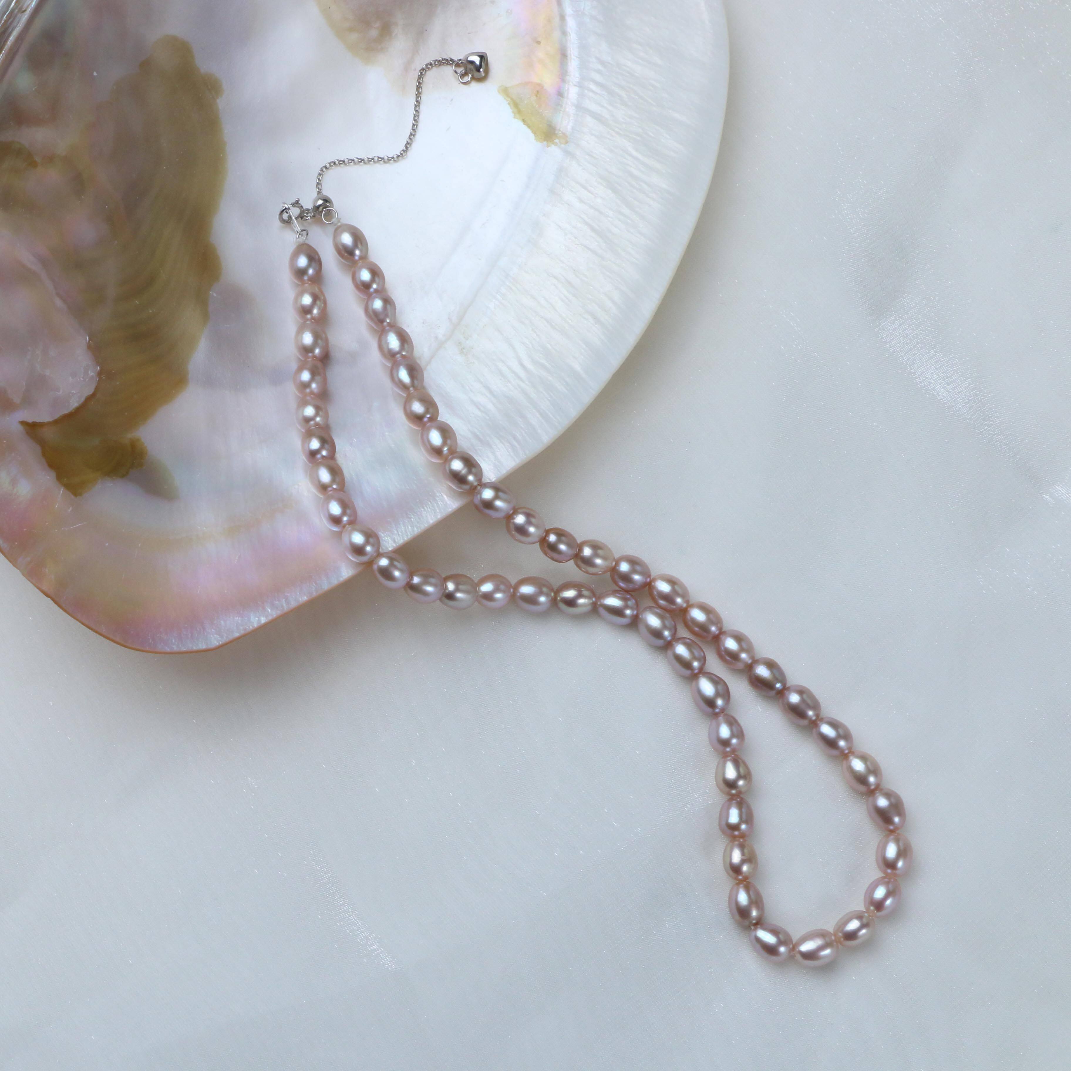 📚 【仙仙专属】s925银6-7mm极光浓郁紫色米珠项链赠耳钉X298+R173