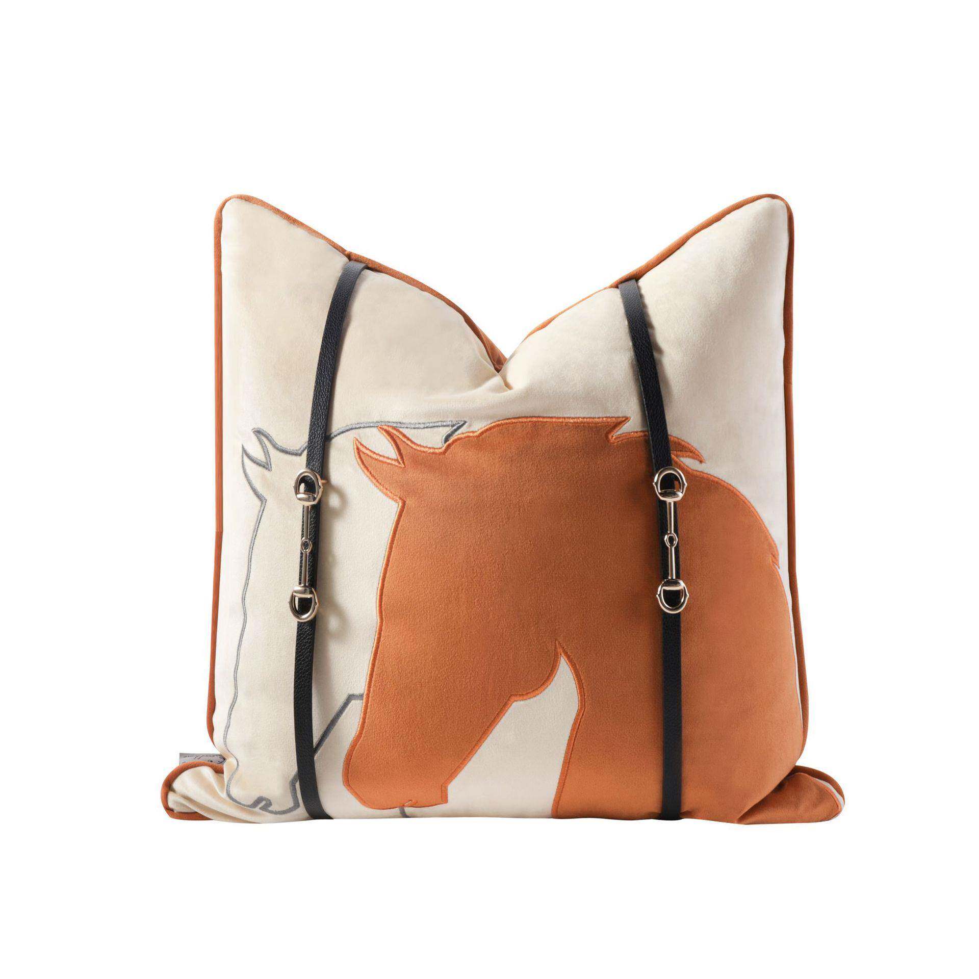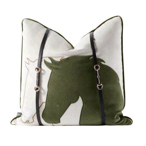 📚 轻奢WL1538样间发板抱枕高级沙感靠居家蓝色马头靠枕卧室搭配复古
