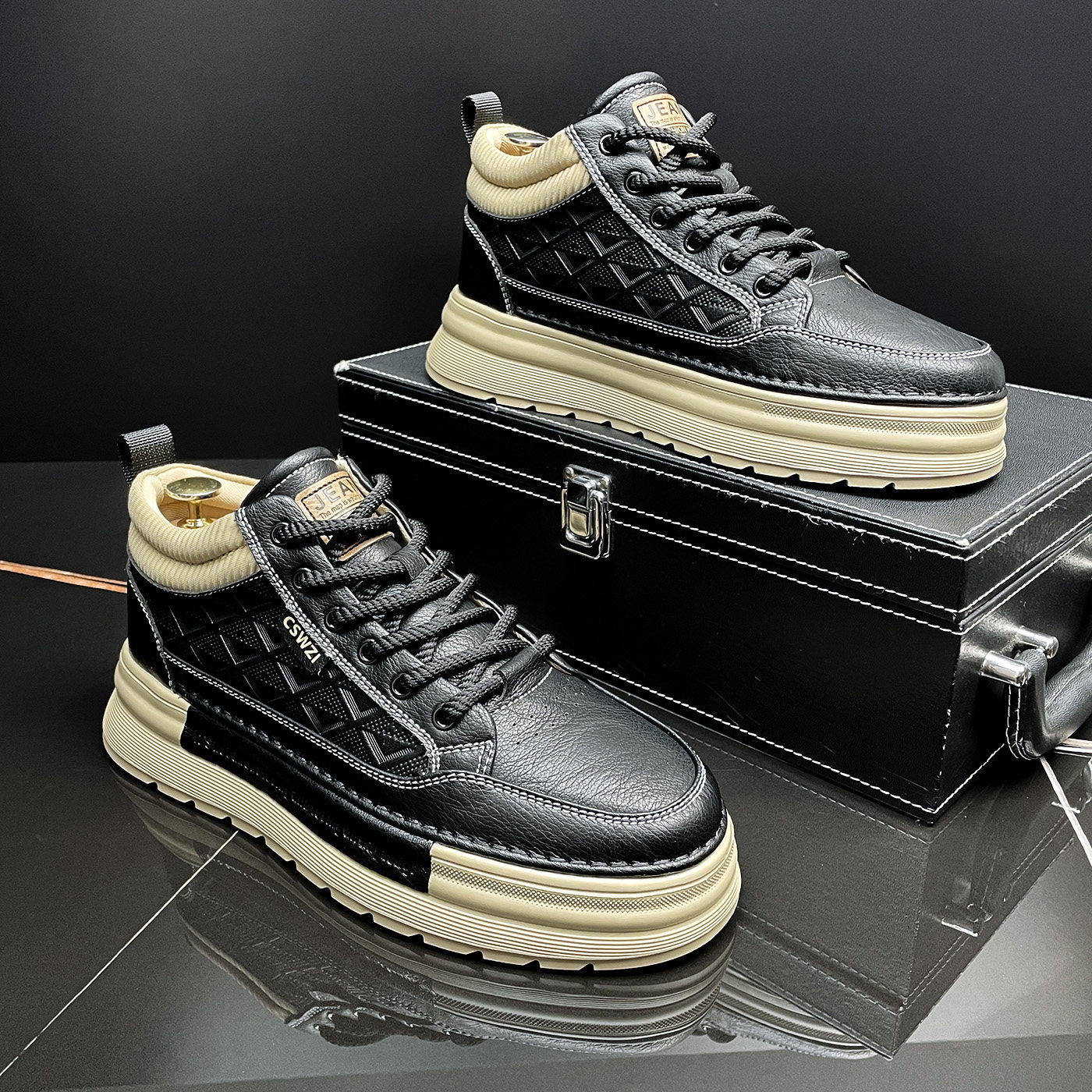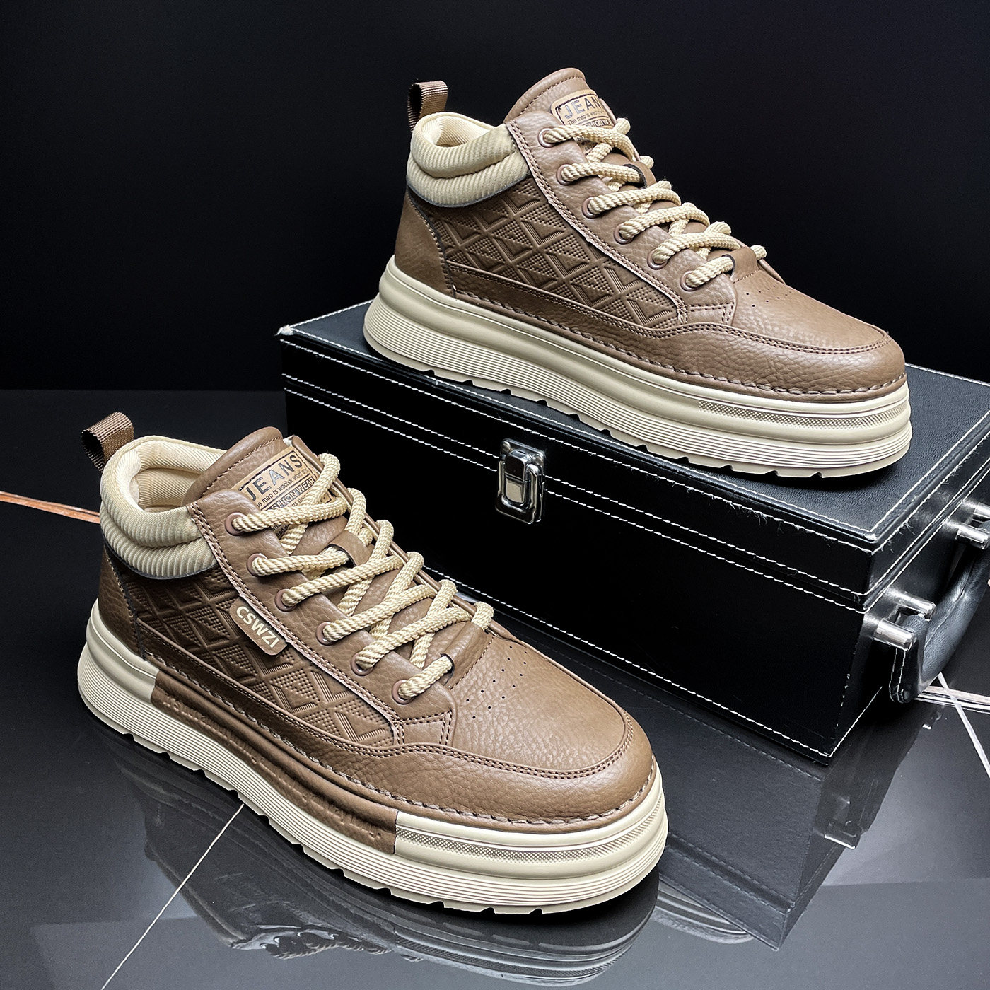 👀这款靴子的设计真的是太赞了!简约而不失时尚感,复古工装风十足,让人一眼就能感受到它的独特魅力。无论是搭配正装还是休闲装,都能轻松Hold住全场。而且,它的增高效果超赞,穿上之后瞬间增高不少,让你的腿部线条更加修长。