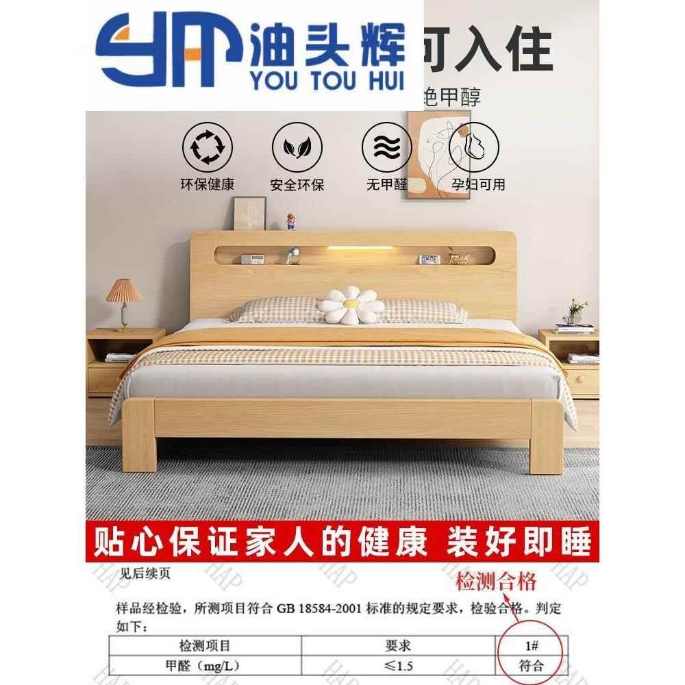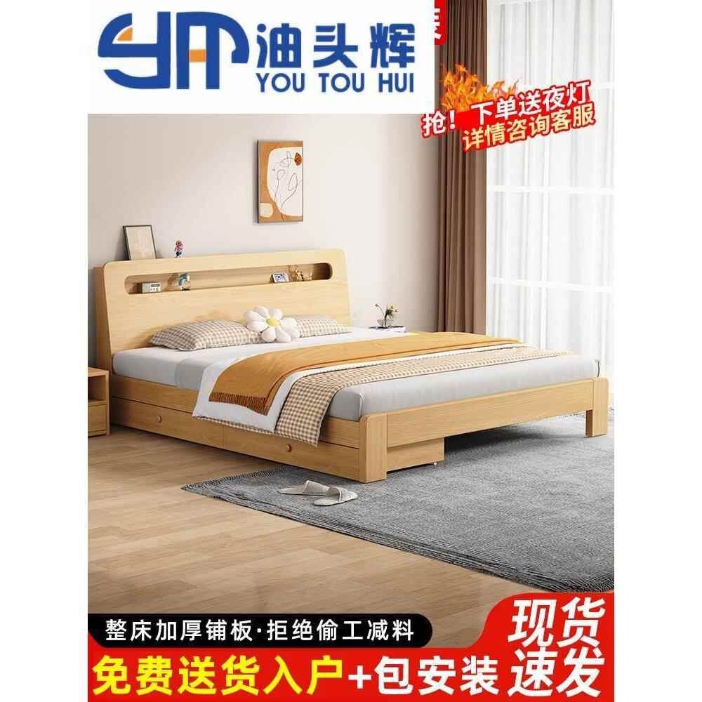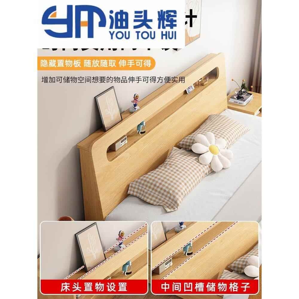 📚 日系原木风床大床主卧一米八双人床简约现代全1.5米床单人1.2出