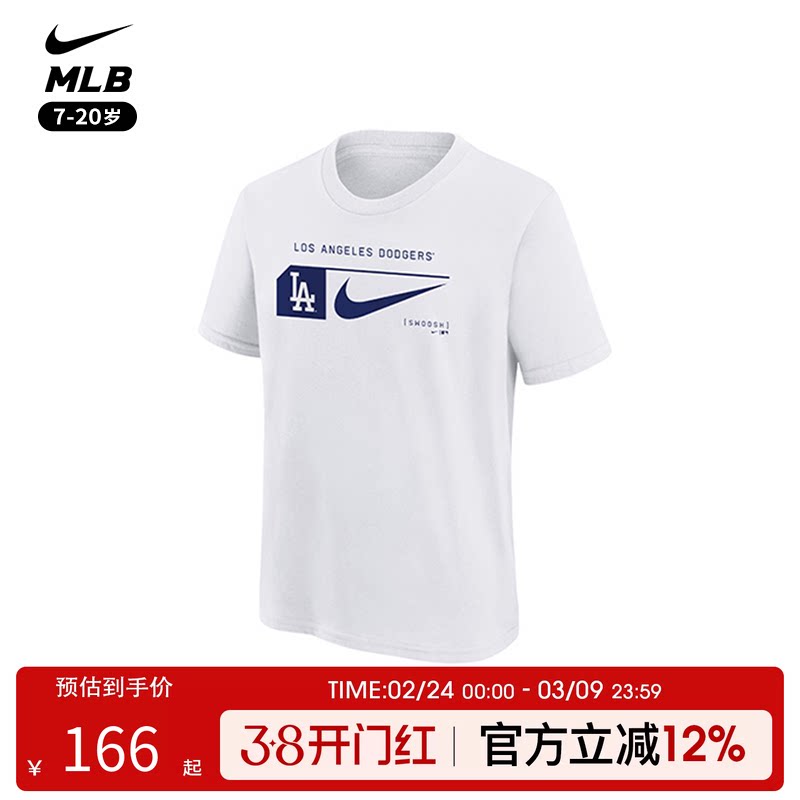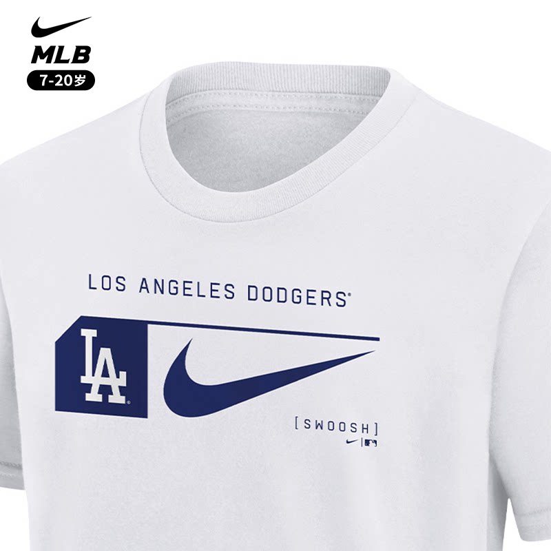 📚 耐克Nike MLB 联名青少年男女纽约洋基道奇白色圆领短袖T恤运动