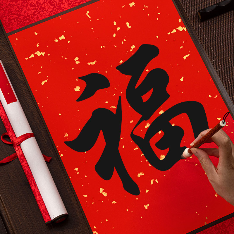 #结婚用品 #御宝阁 #万年红书法卷轴 #结婚订婚仪式 #手写福字 #红纸洒金 #半生熟对联纸