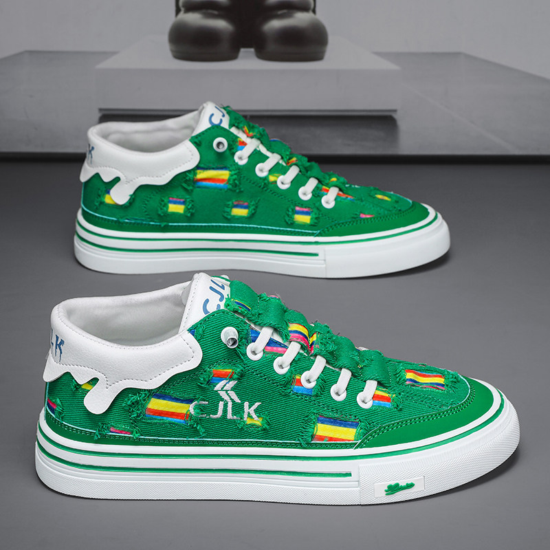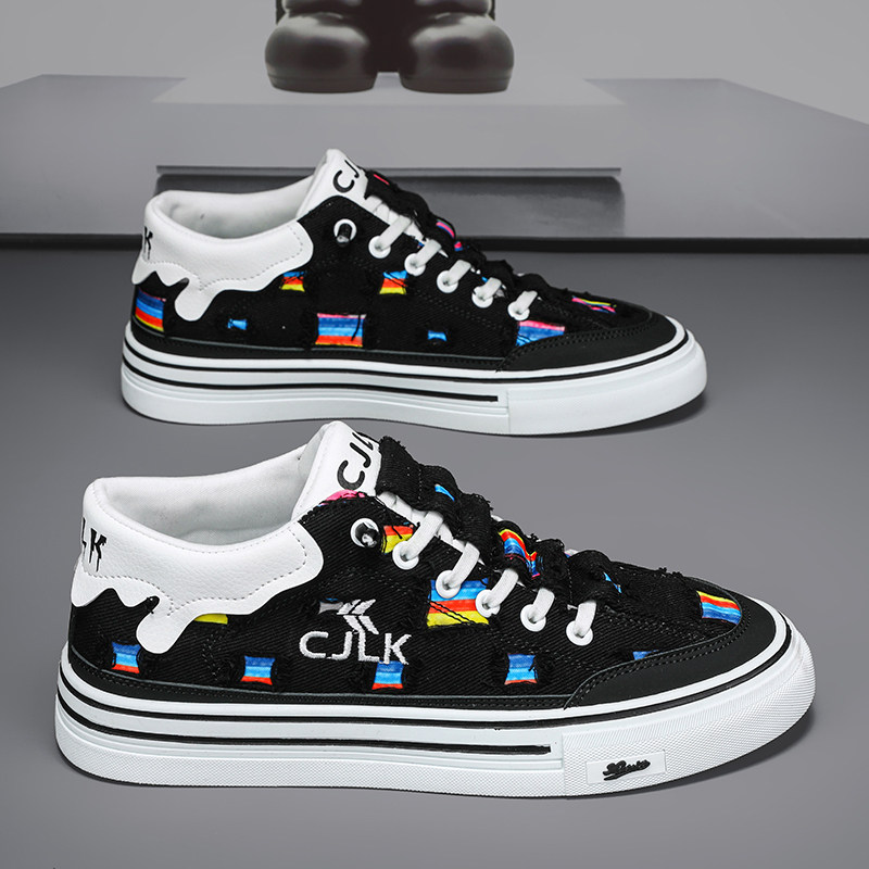 📚 帆布男鞋2026新款春季透气百搭运动休闲青少年一脚蹬板鞋乞丐破洞