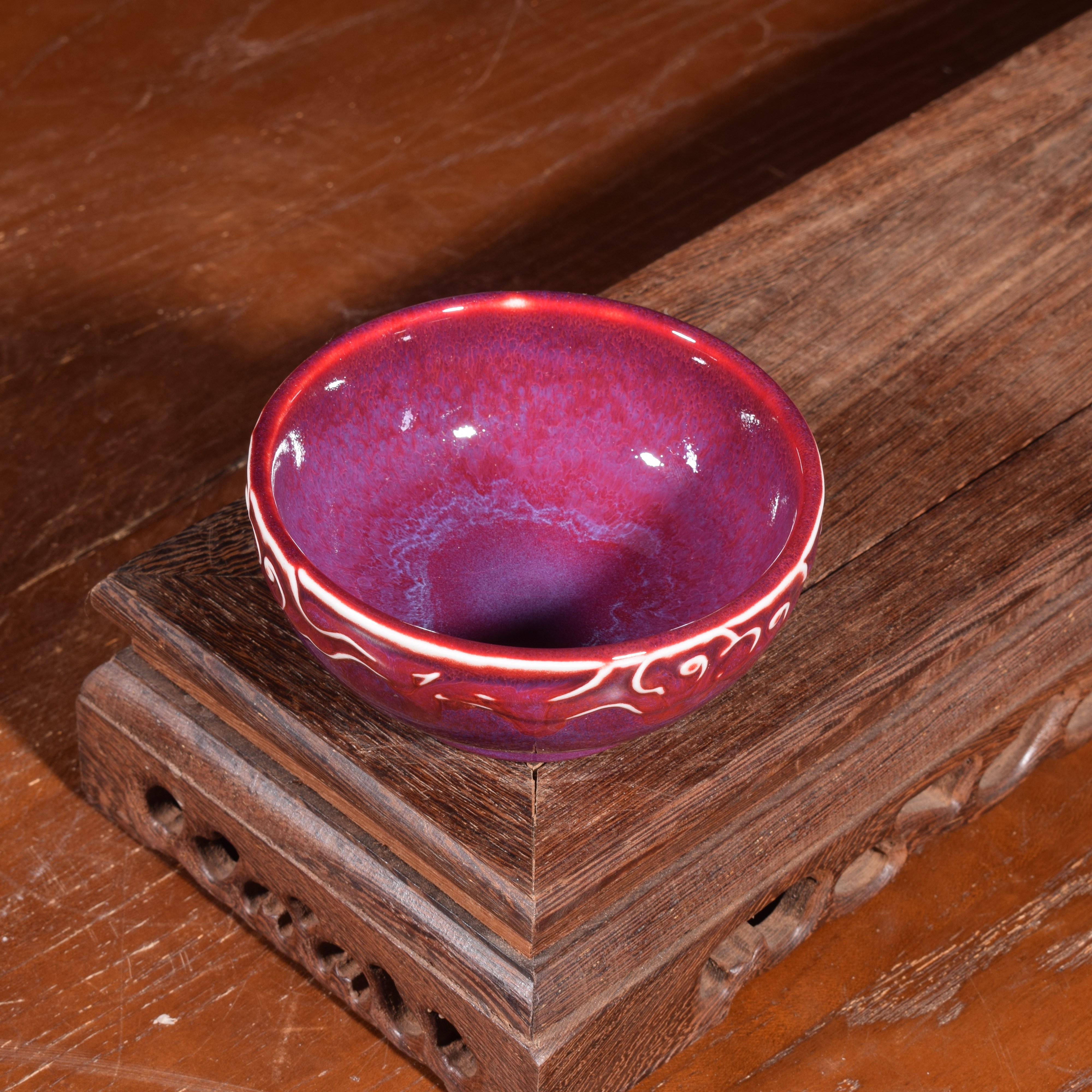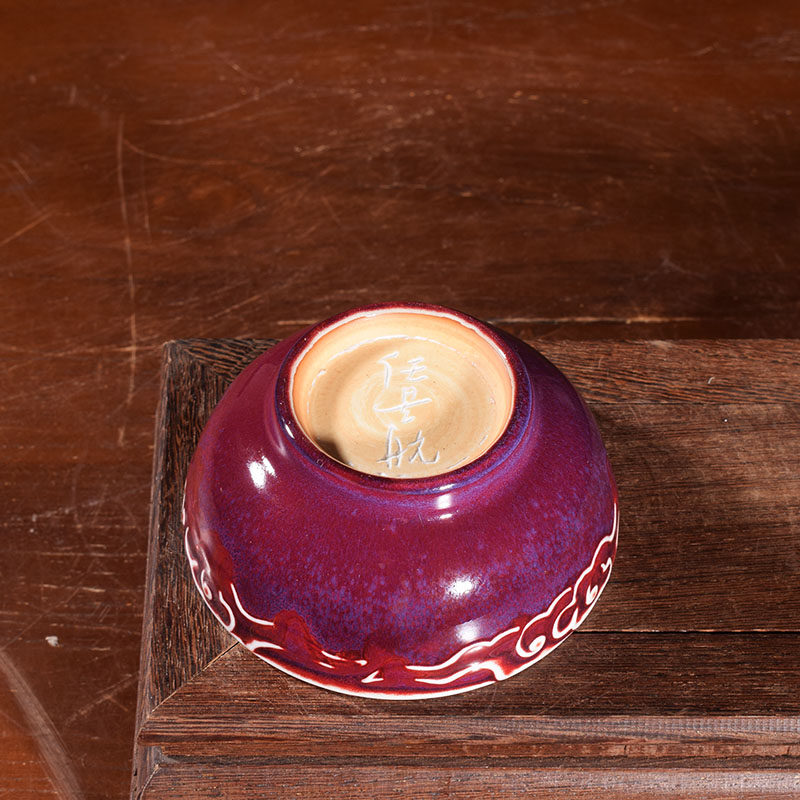 📚 国工美任星航手工茶器 窑变柴烧星航紫【祥云承露杯】禹州神垕