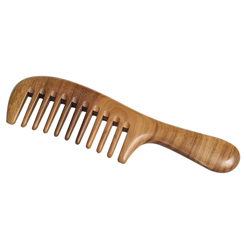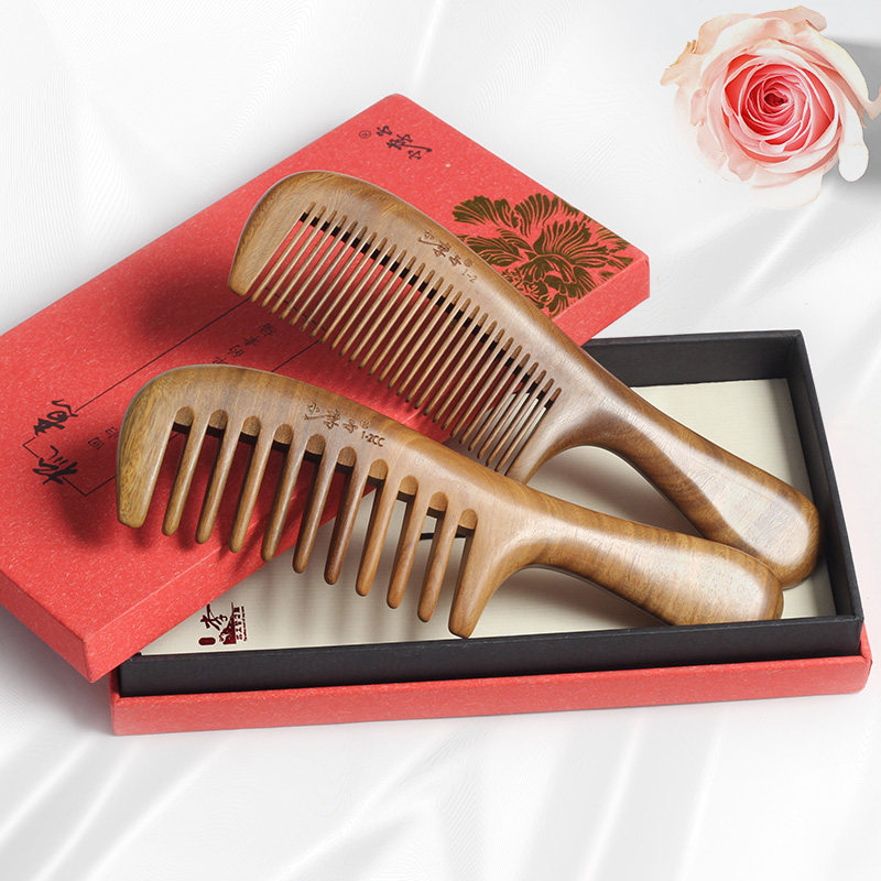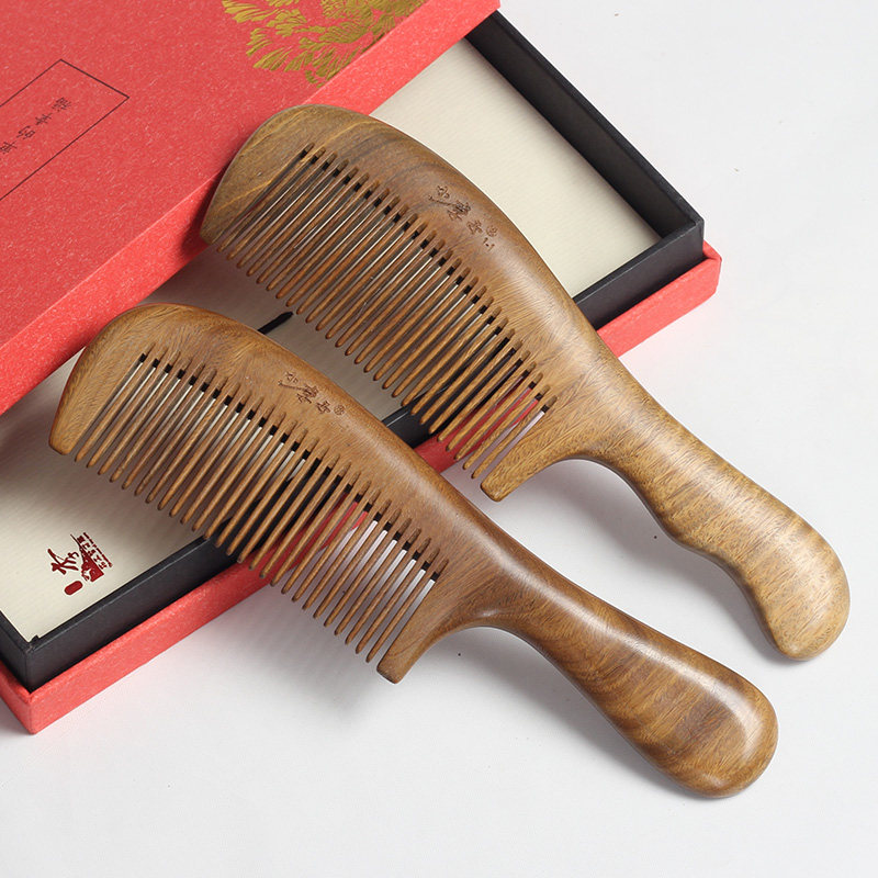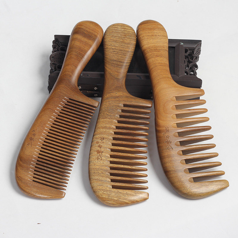 📚 天然绿檀木梳细齿直卷发女长发檀香木按摩梳宽齿头部梳子家用刻字
