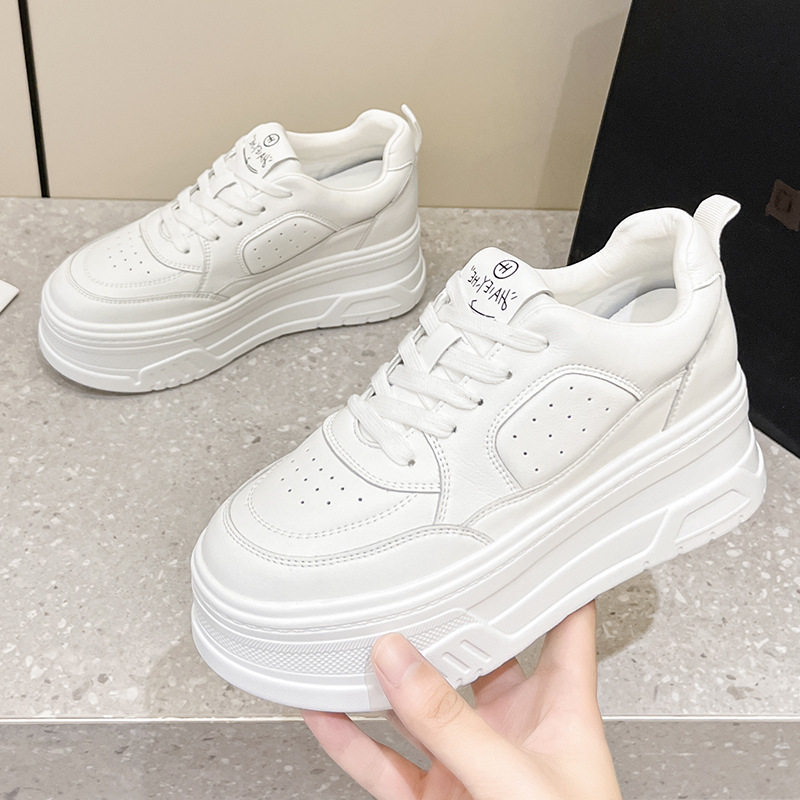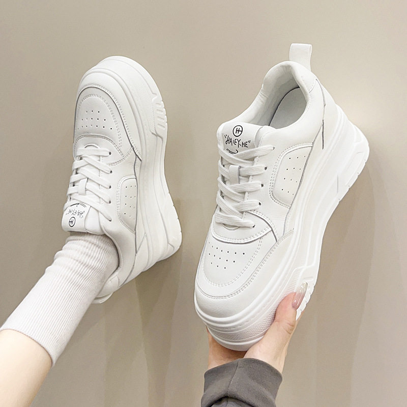 📚 周深同款厚底小白鞋女真皮2024新款百搭加绒运动松糕鞋休闲鞋子