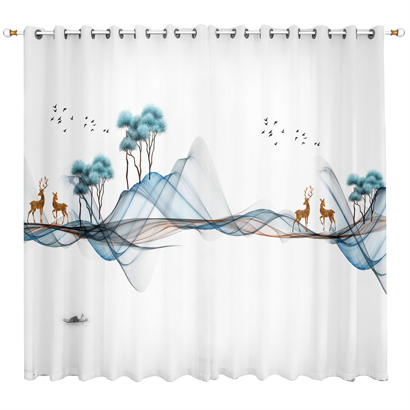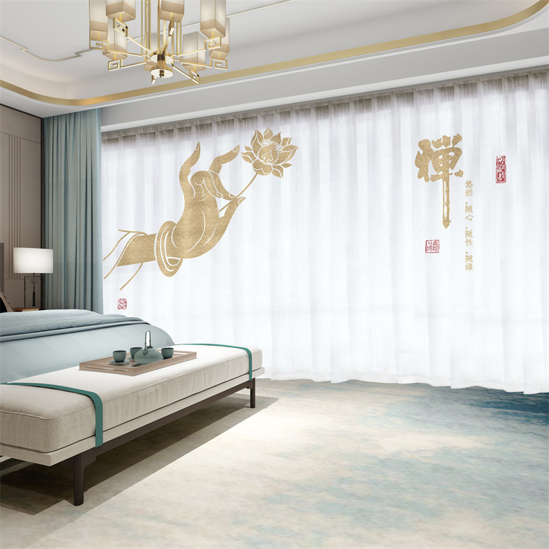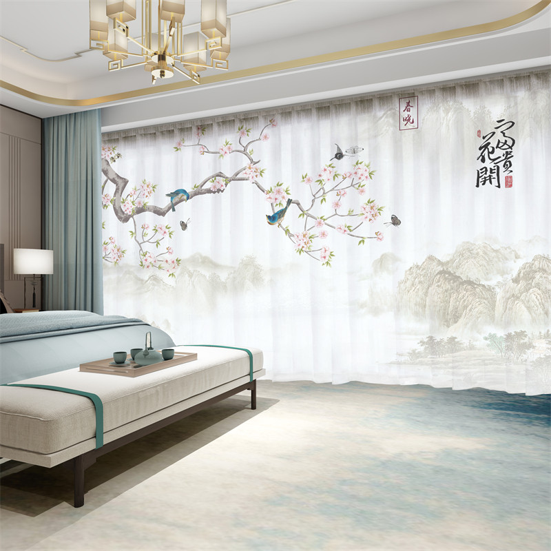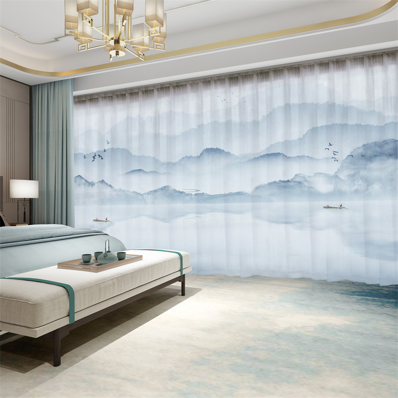 📚 新中式窗帘遮光2026新款中国风景古典山水墨画客厅透光不透人纱帘