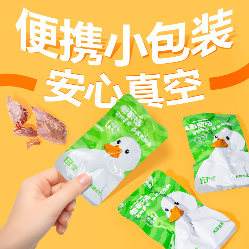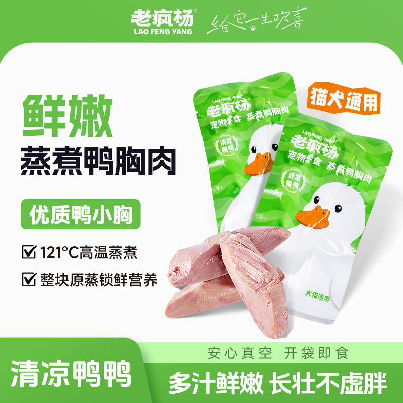📚 【新品】老疯杨蒸煮鸭胸肉鸡胸肉鸭小胸鱼油鸡心即食湿粮猫狗零食