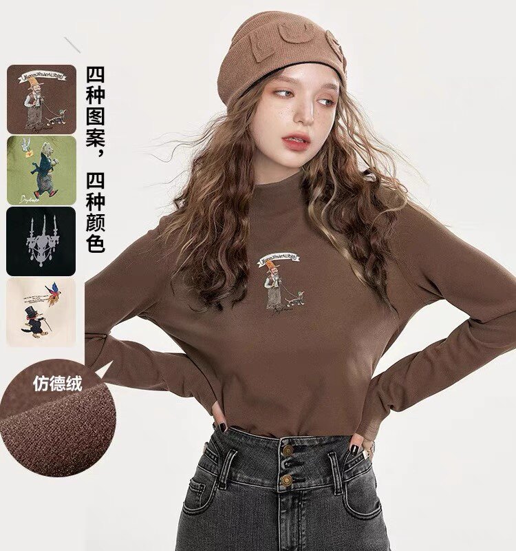 💥"秋冬新宠!妖精品质德绒半高领长袖打底衫T恤,美拉德诱人上线🔥"