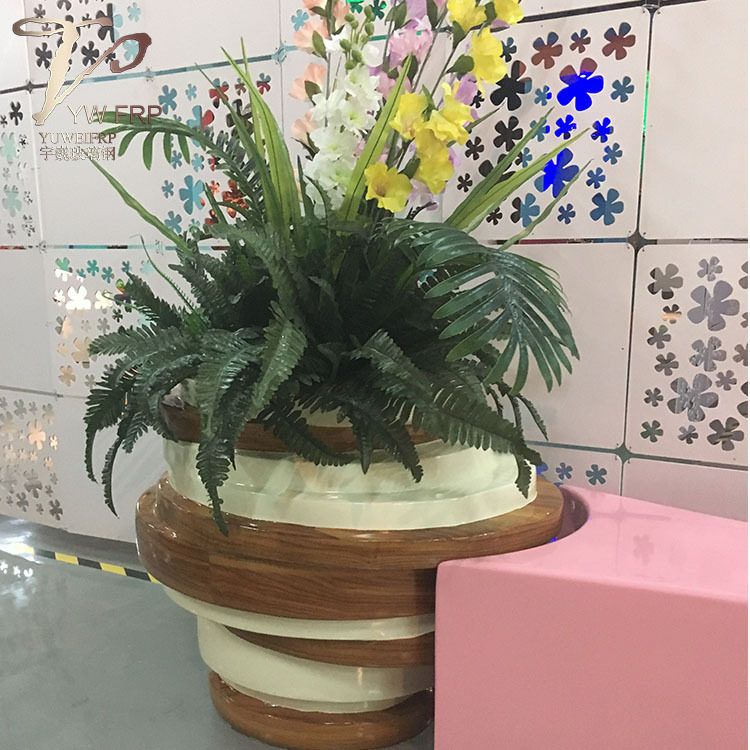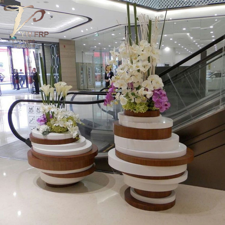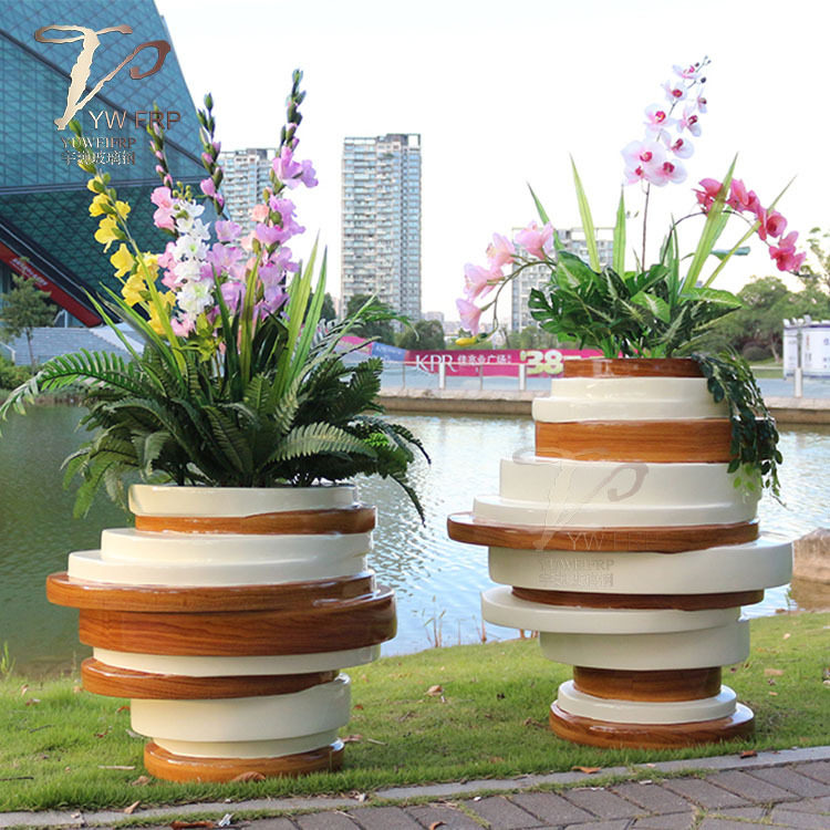 📚 北欧玻璃钢重叠组合花盆酒店仿木纹花器办公室花瓶户外花园种植箱