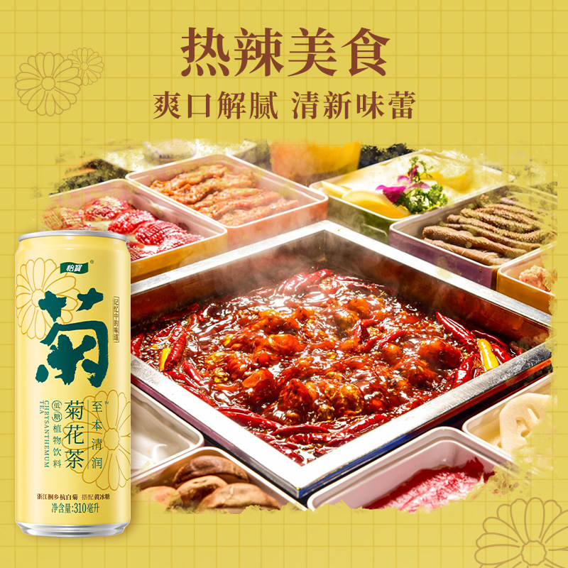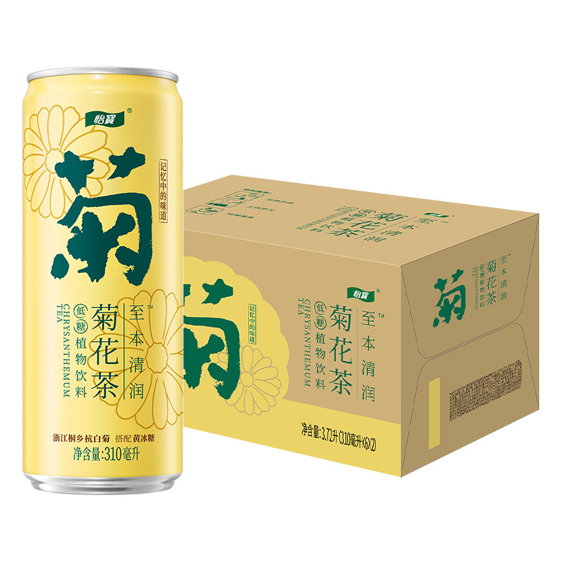 📚 怡宝至本清润菊花茶饮料310ml*12瓶CAN罐装新年红色喜庆送人包装