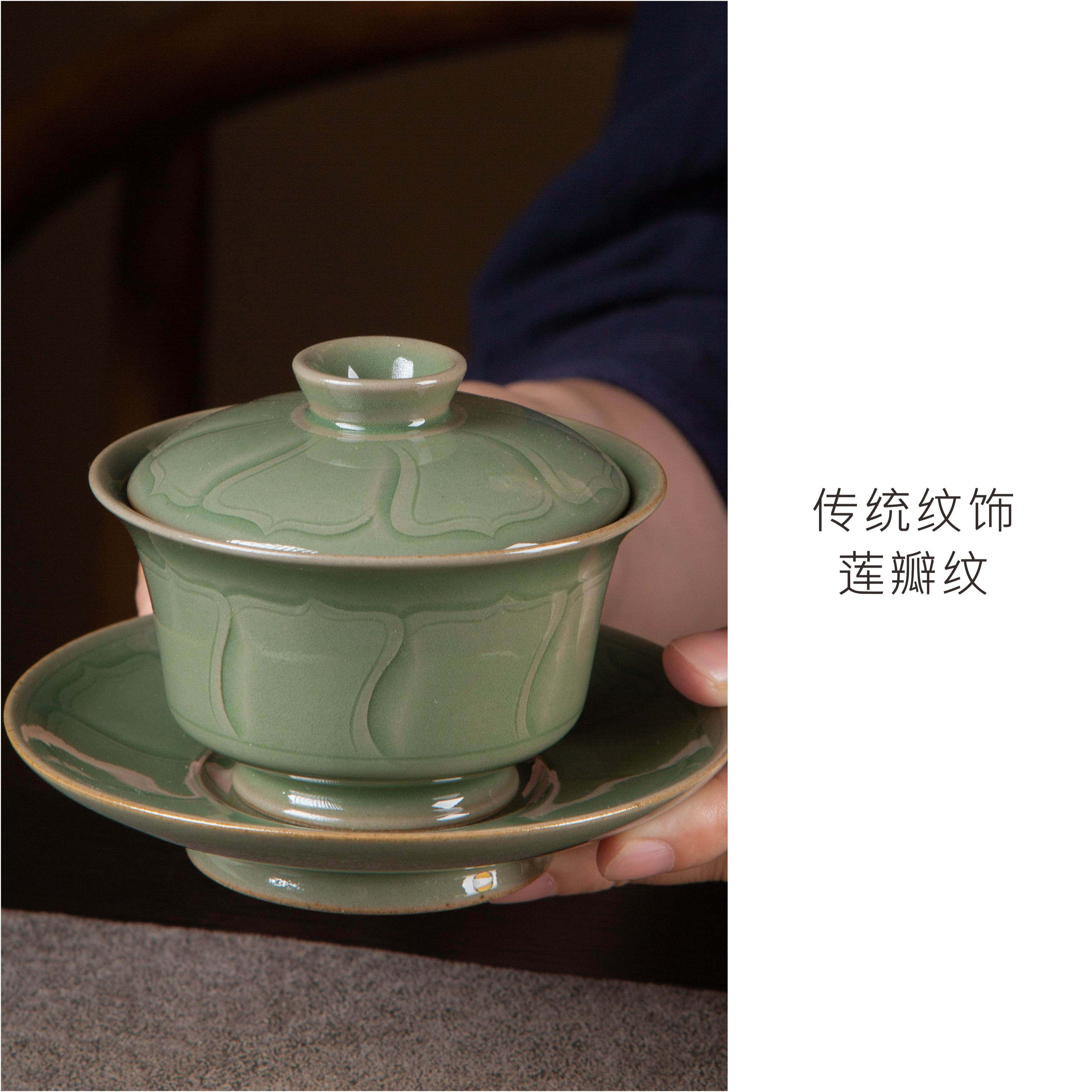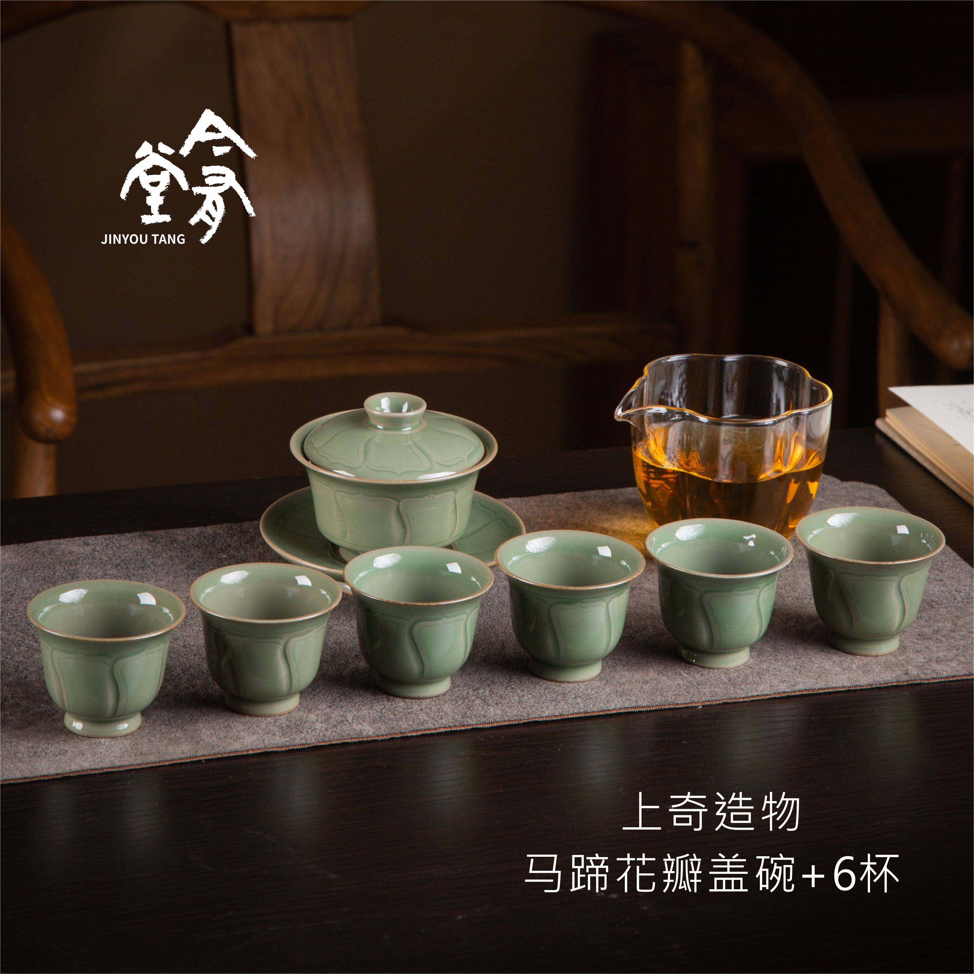 📚 上奇造物|耀州窑马蹄花瓣宽莲瓣纹三才盖碗六杯套组礼盒套装茶具