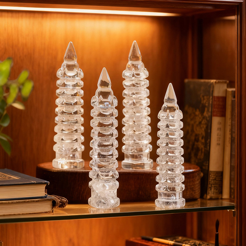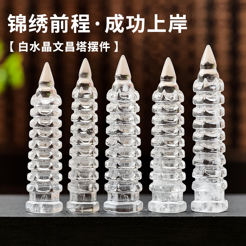 📚 天然白水晶文昌塔学生书房桌面水晶家居装饰原石雕刻状元塔摆件