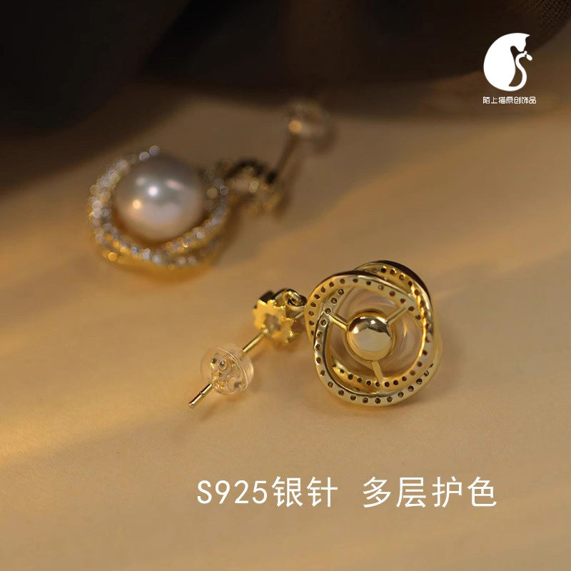 📚 法式玫瑰淡水珍珠耳环轻奢时尚感女简约气质耳钉2024新款爆款耳饰