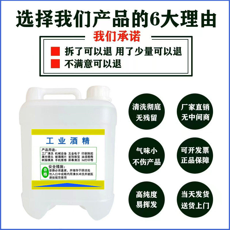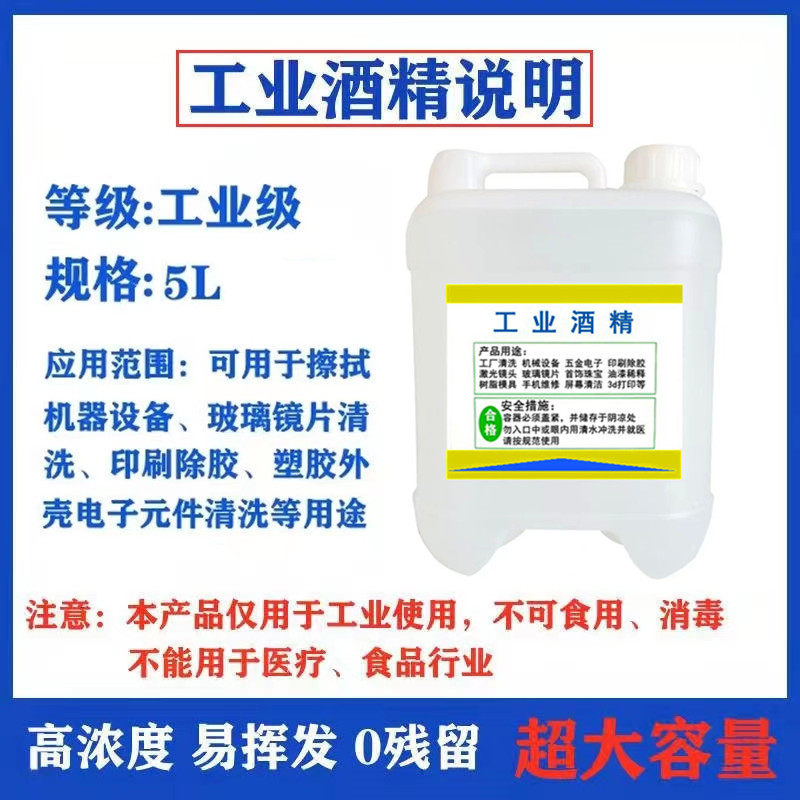 📚 工业酒精95度清洁电子元件3d打印玻璃镜片仪器5L高浓度酒精95度