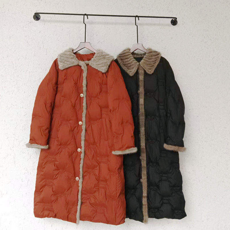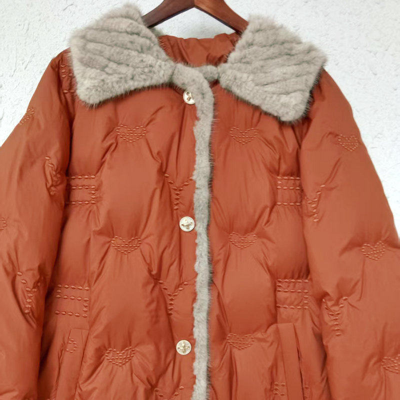 📚 [90鹅绒]卡米兰复古水貂毛领拼接白鹅绒羽绒服女2025冬季新款外套