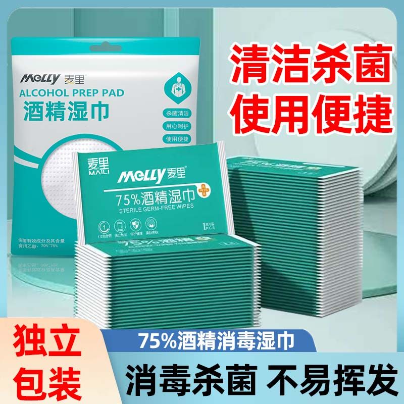 📚 麦里75%酒精消毒湿巾75度湿纸巾独立包装棉片成人杀菌学生