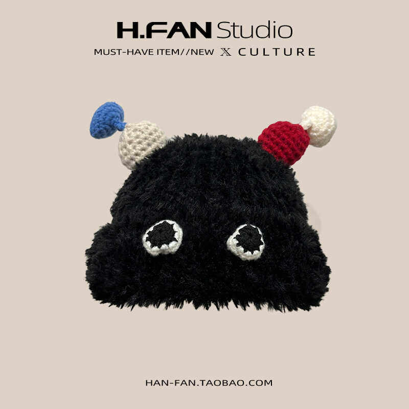 📚 日系可爱搞怪触角毛绒帽子女冬季加厚保暖护耳帽毛茸茸显脸小学生