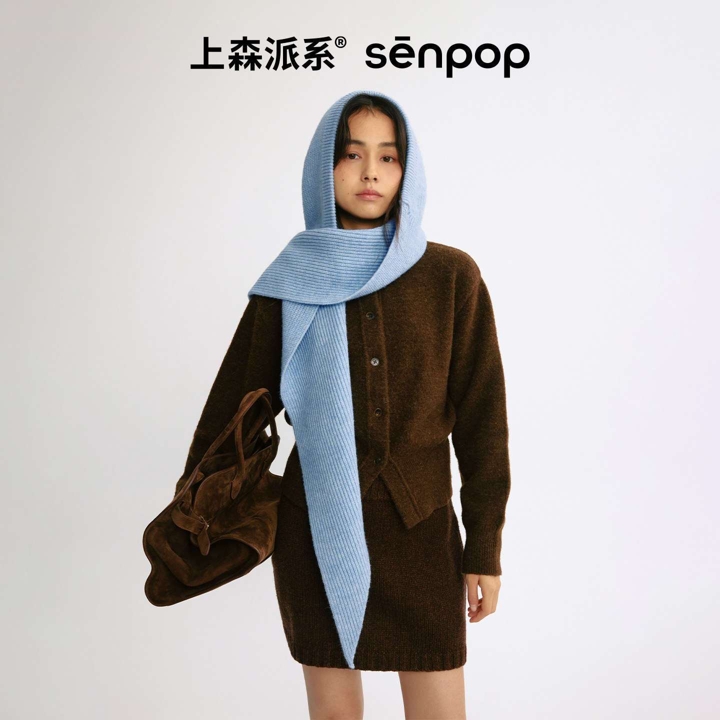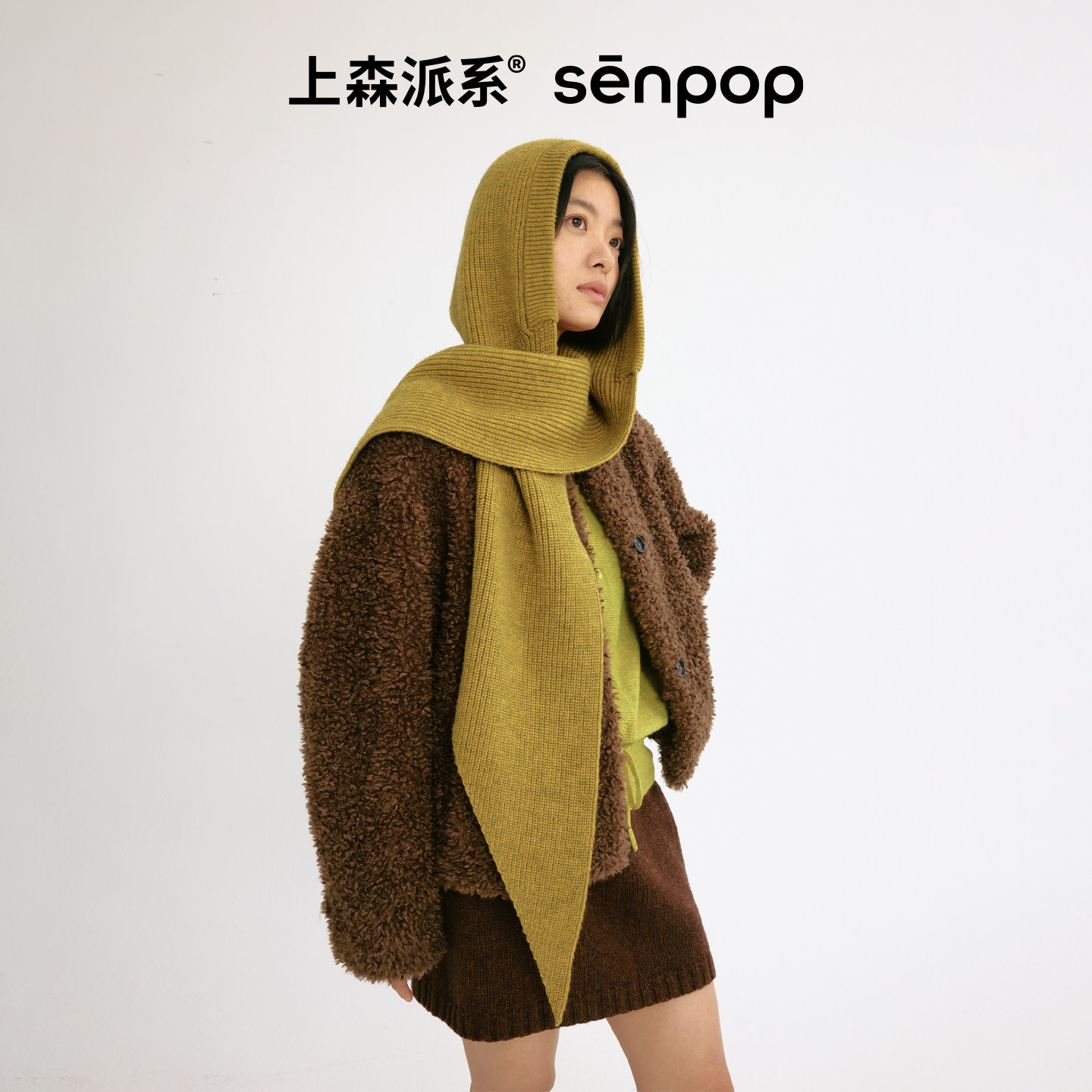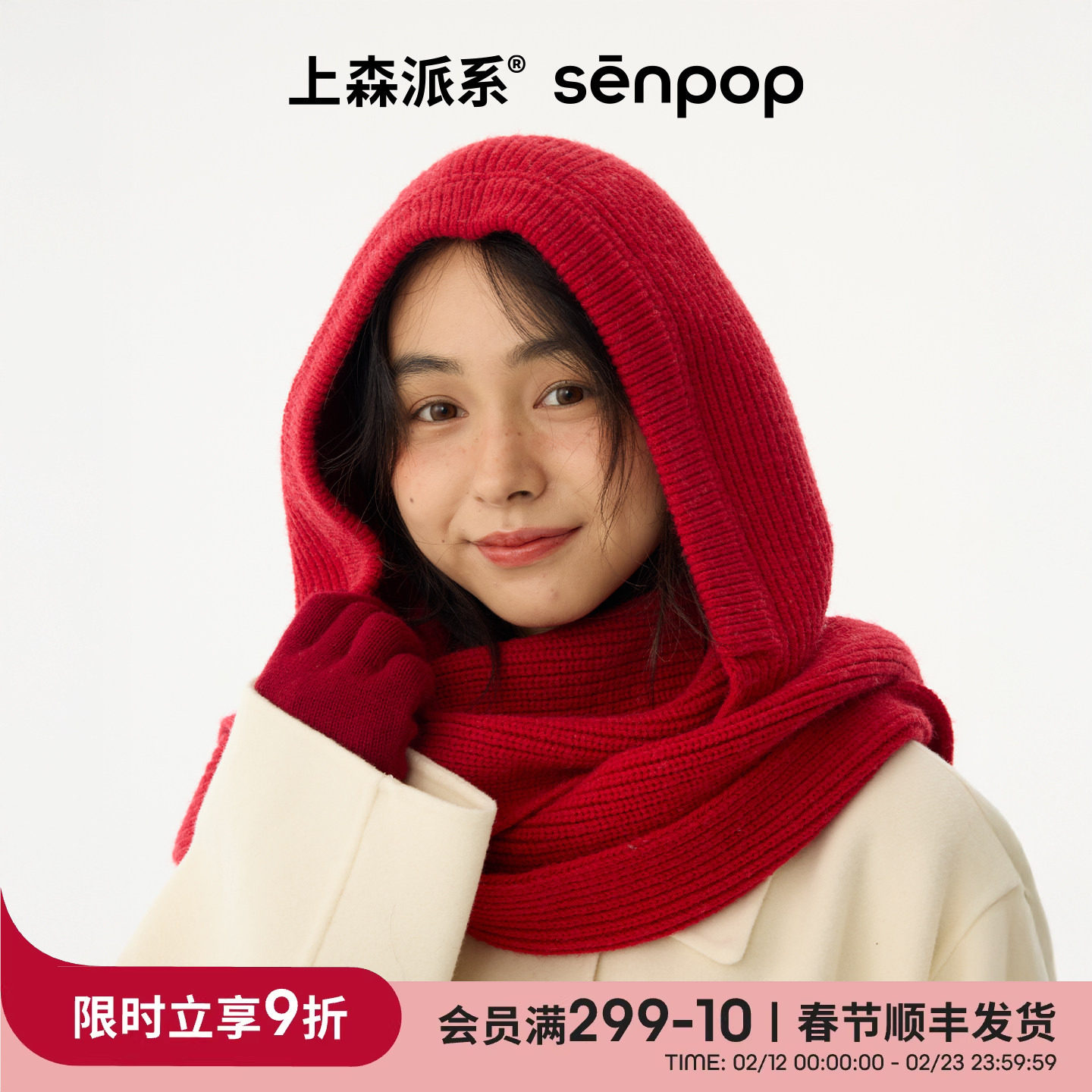 📚 上森羊毛连帽围巾红色帽子女2025新款巴拉克拉法帽针织围脖堆堆帽