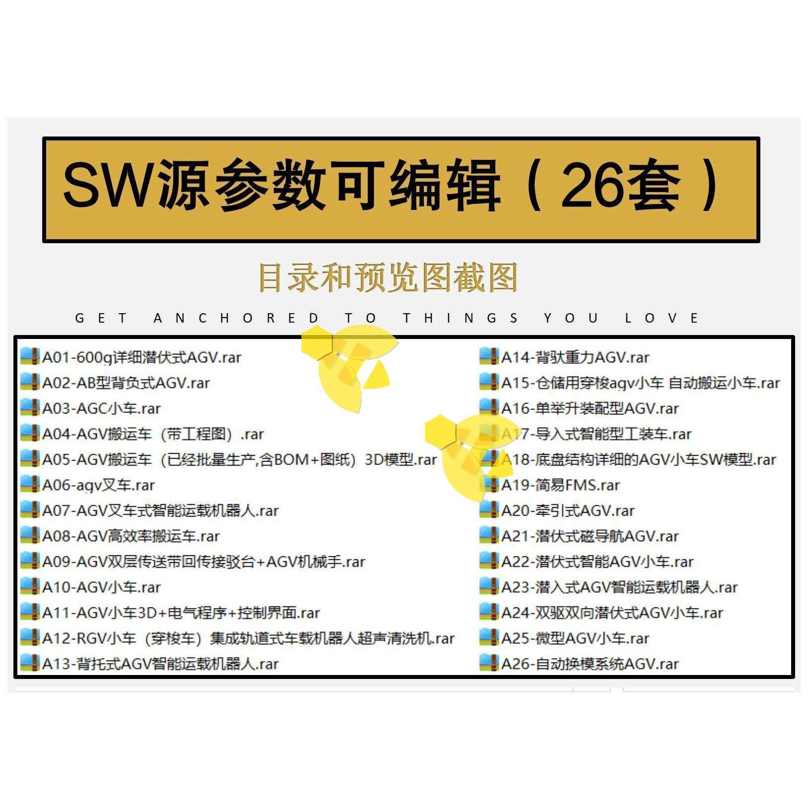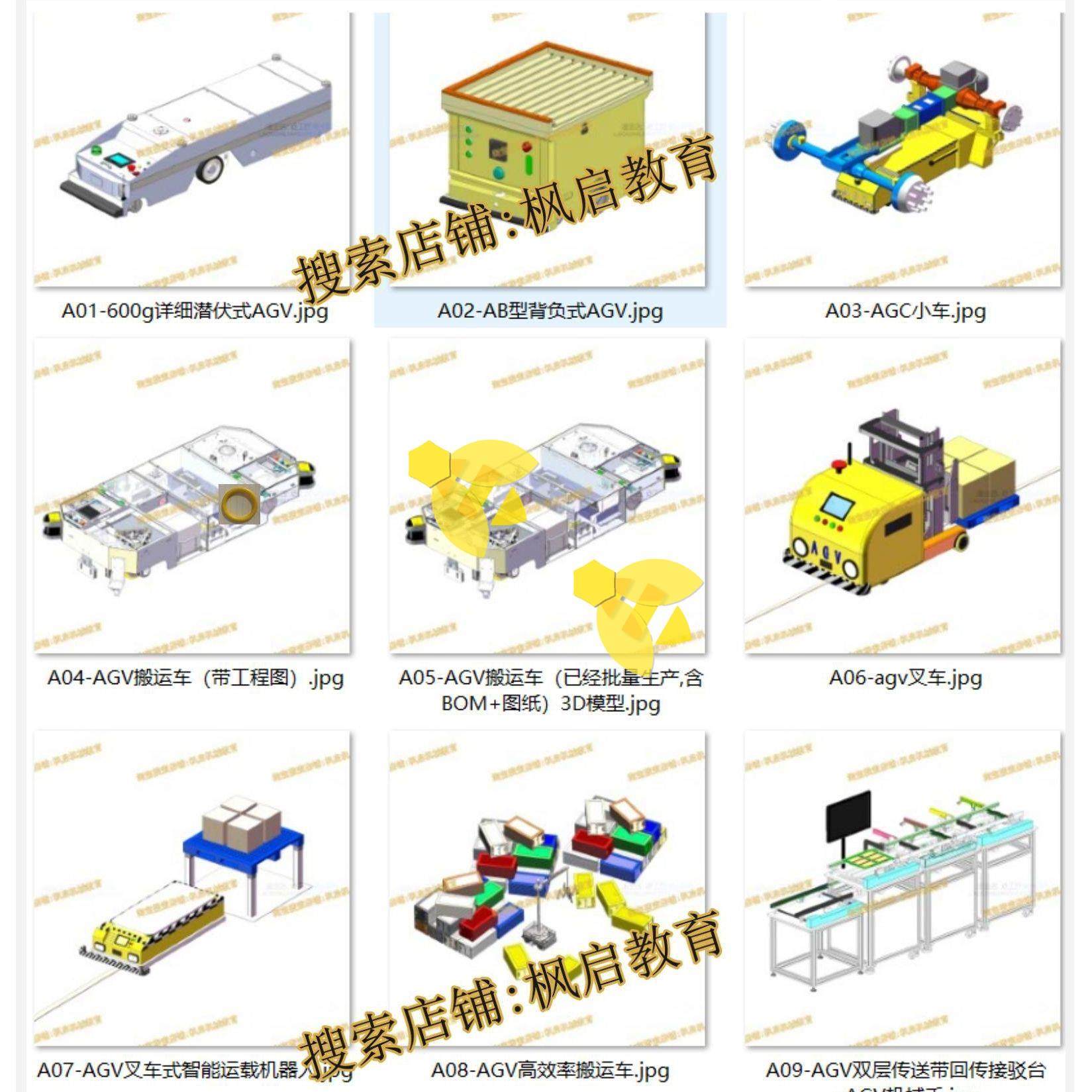 📚 50套AGV小车3D图纸潜伏式牵引式磁导航引导仓储搬运穿梭智能小车