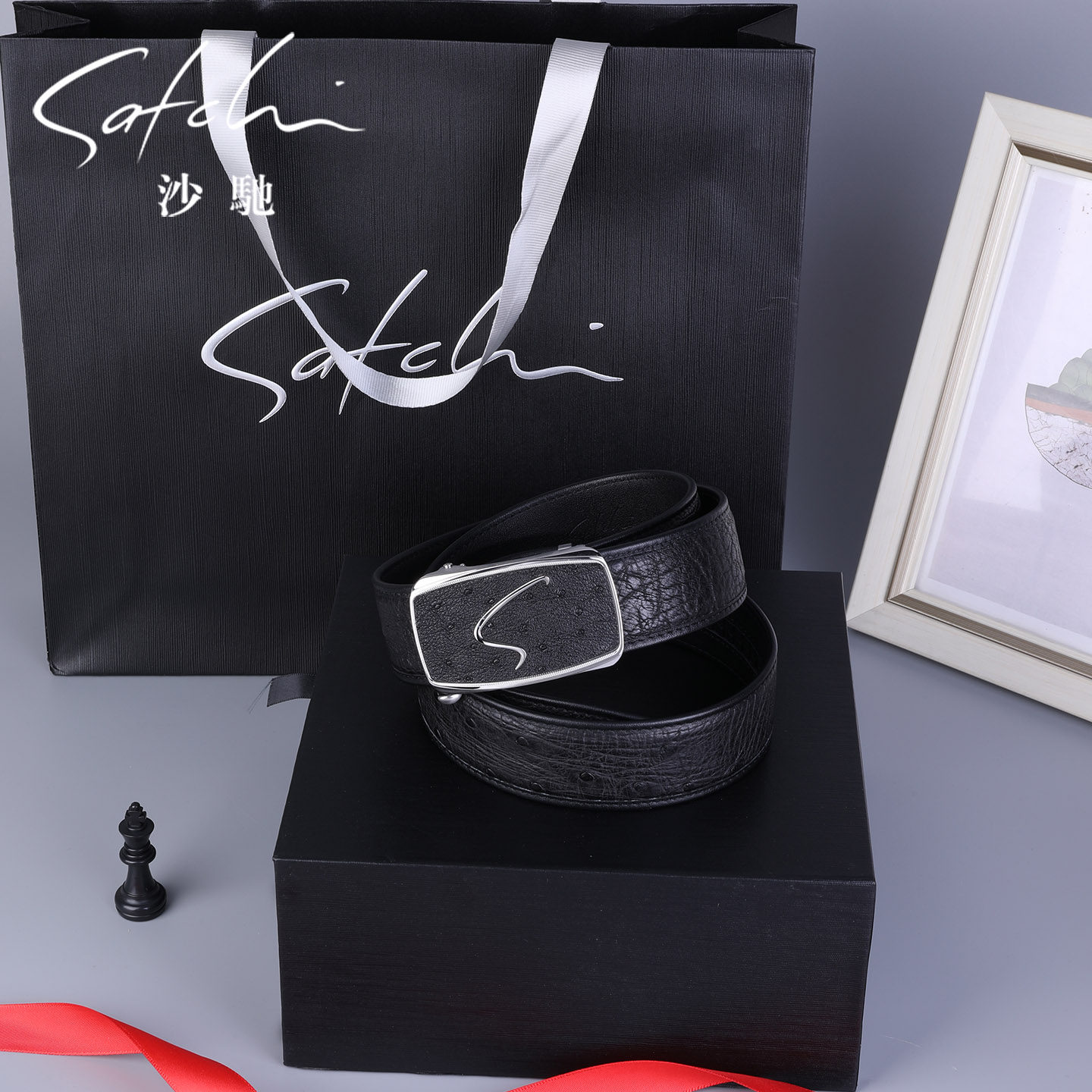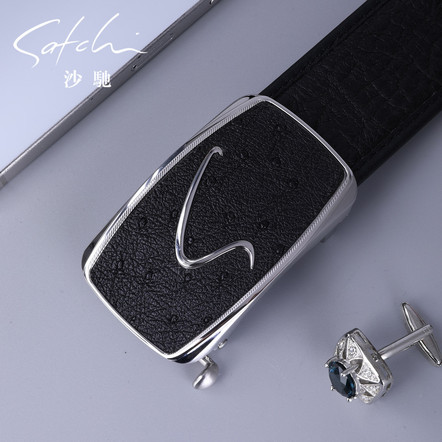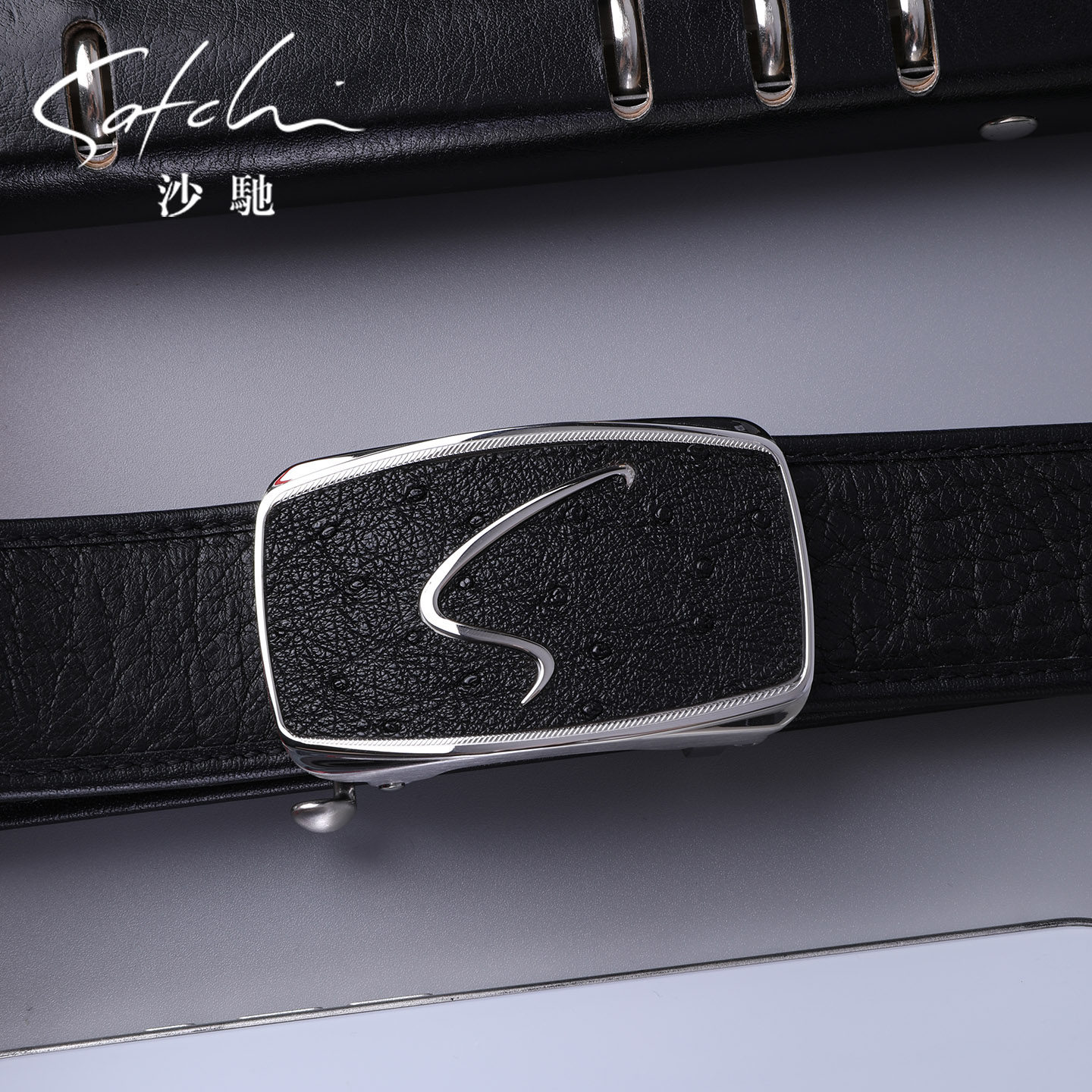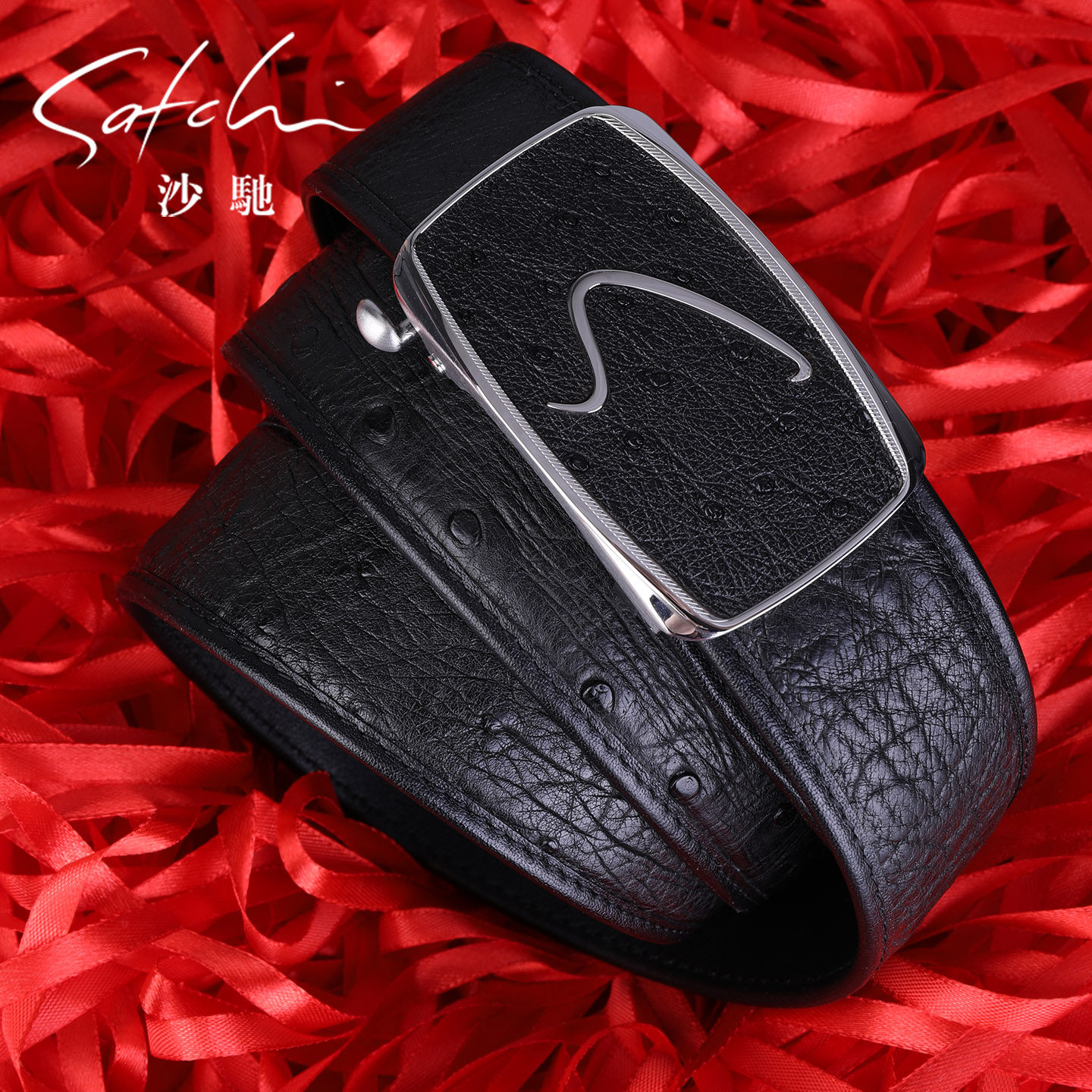 📚 沙驰皮带男真皮2026新款时尚不锈钢自动扣鸵鸟皮腰带商务休闲腰带
