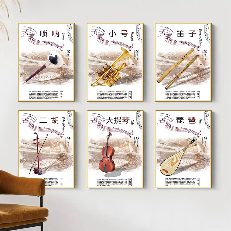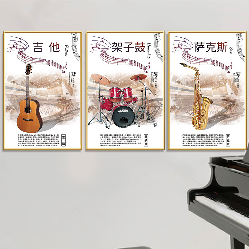 📚 钢琴房音乐教室装饰画琴行乐器墙面挂画吉他架子鼓小提琴海报壁画