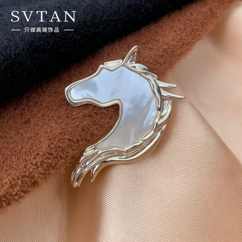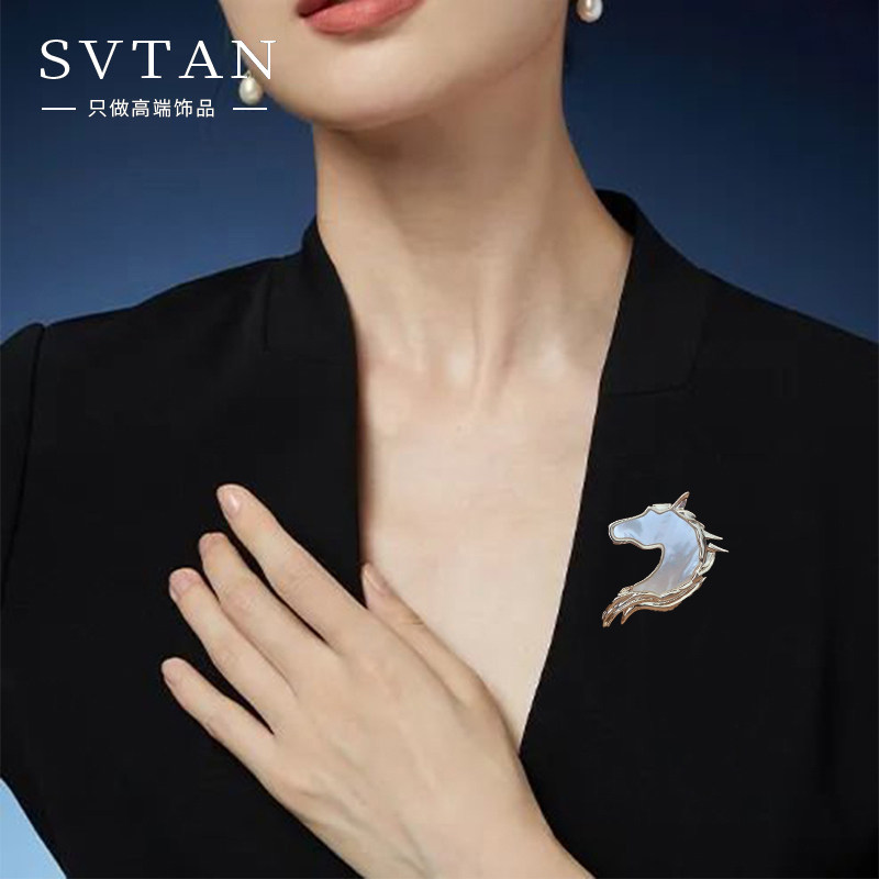 📚 轻奢气质贝母马首胸针高档女本命年生肖别针高级感胸花配饰送礼男