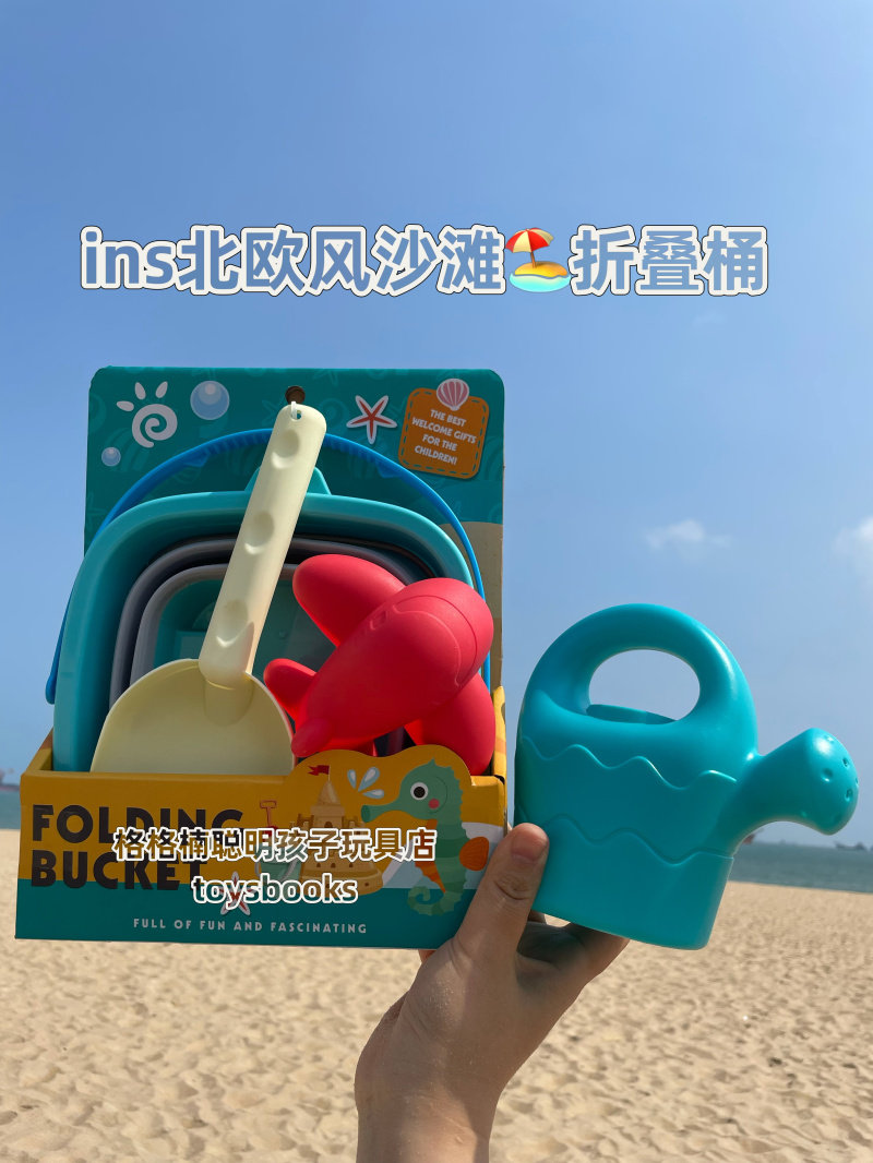 📚 北欧风多功能折叠桶赶海玩沙装水挖沙贝壳铲戏水桶便携海边玩具
