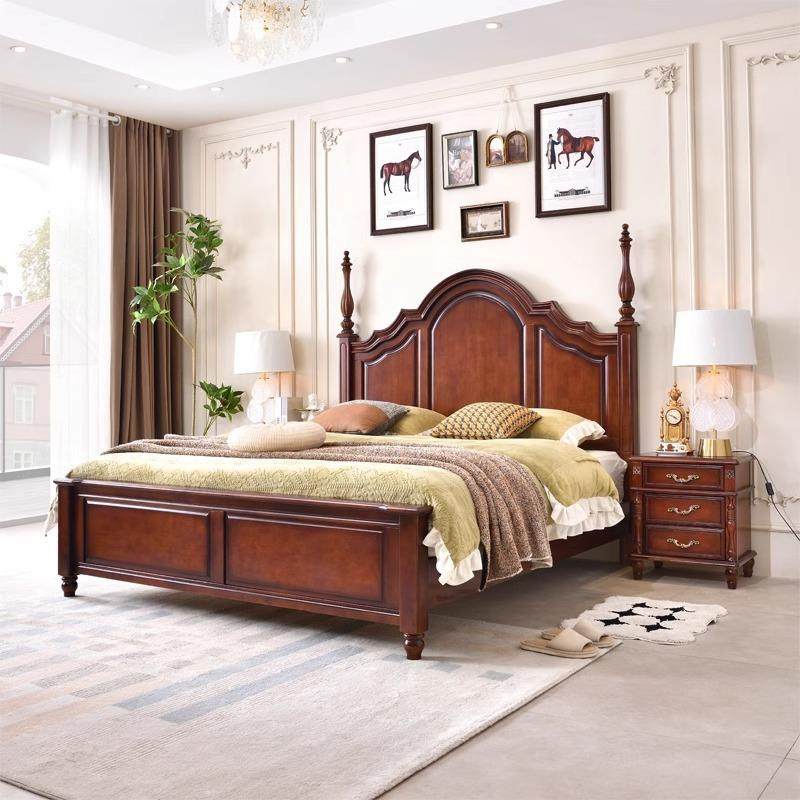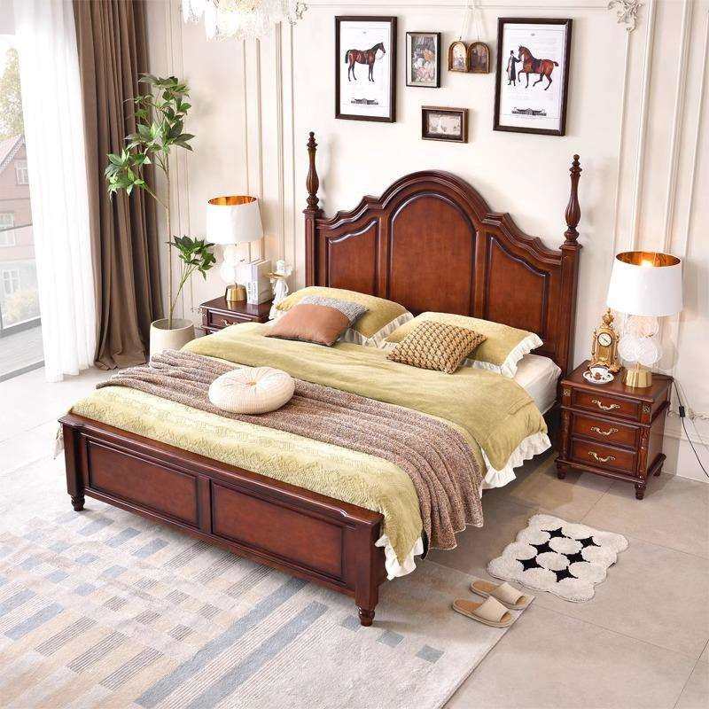 📚 床双人床实木加厚1米8大床简约现代家用主卧室高端复古风美式婚床
